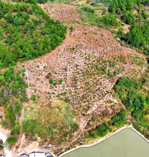 图五 村委会西油茶林俯瞰(中间开垦处) 图六 油茶挂果情况
