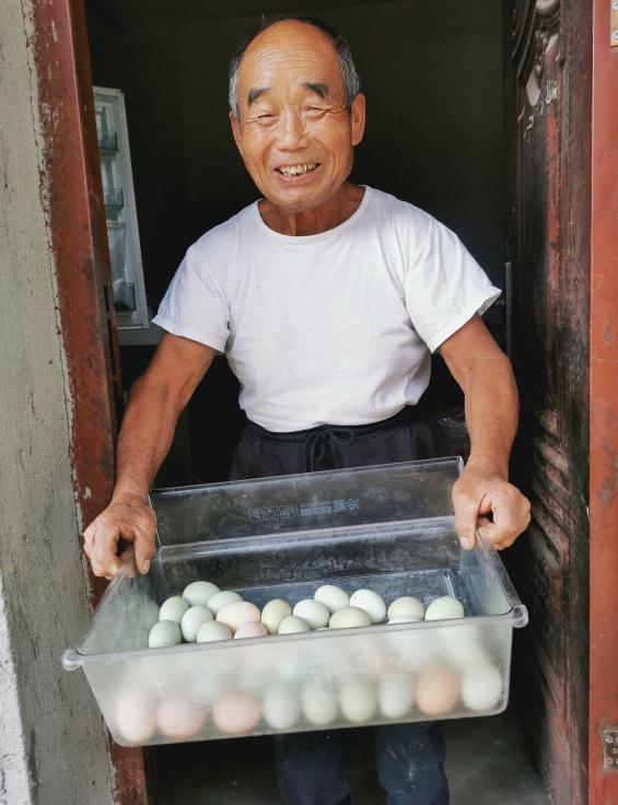 金鸡啼鸣秋已至,鸡蛋销售好“钱”景。今年年初,驻村工作队为仙河店村提供4100只优质鸡苗,并跟踪养殖指导。按照“脱贫户优先、有养殖场地优先”的分配原则,75岁脱贫户胡迎生今年分到了70只鸡苗,在他的悉心养护下,鸡苗无一死亡,并从8月份开始陆续产蛋。由于采用稻谷、玉米喂养,他家的鸡蛋格外受欢迎,经常是供不应求。根据当前市场价格,土鸡蛋每个约1.5元,成年活鸡每只100多元。在入户走访过程中,他反复表示希望明年分到更多鸡苗,能赚到更多的钱。