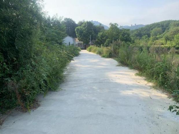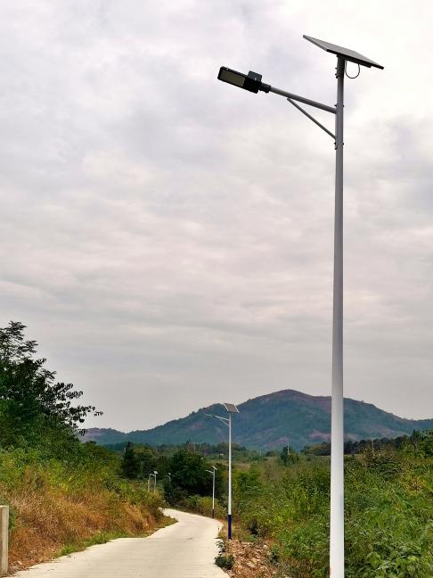 图九 进村道路拓宽对比(柏油路为原道路) 图十 新安装路灯