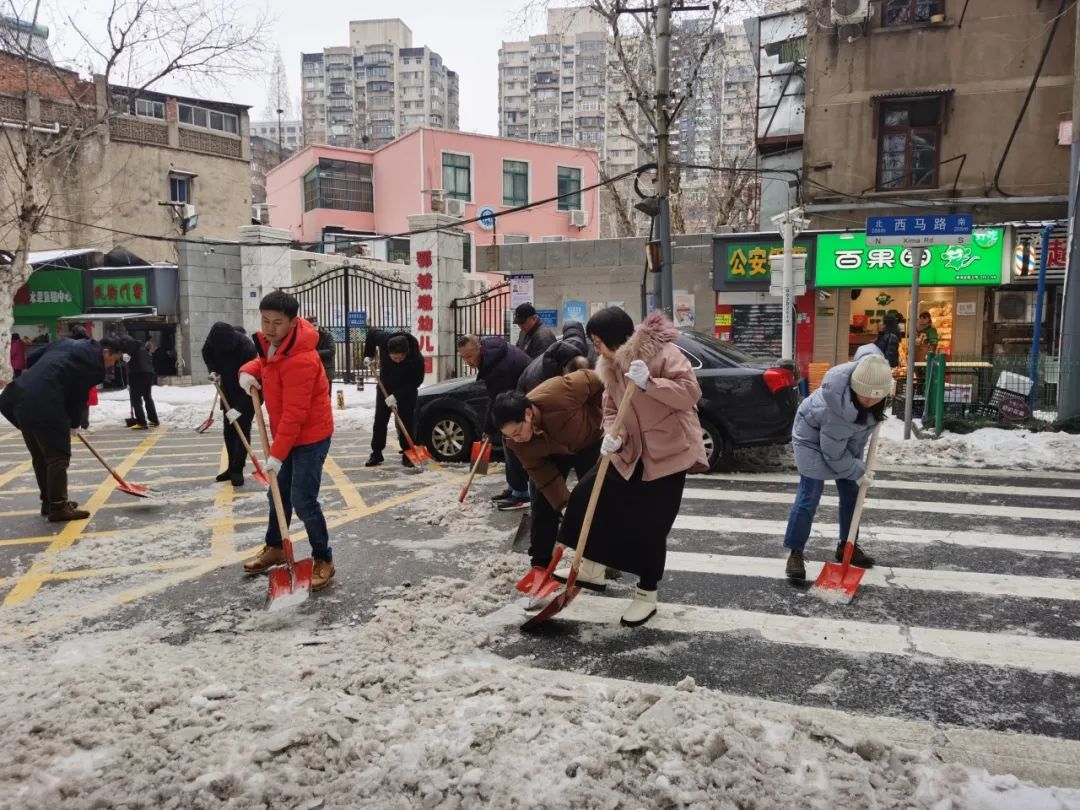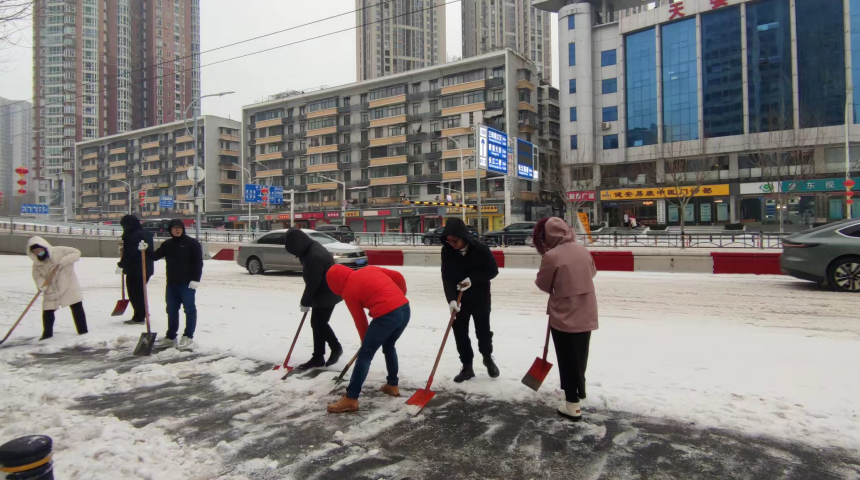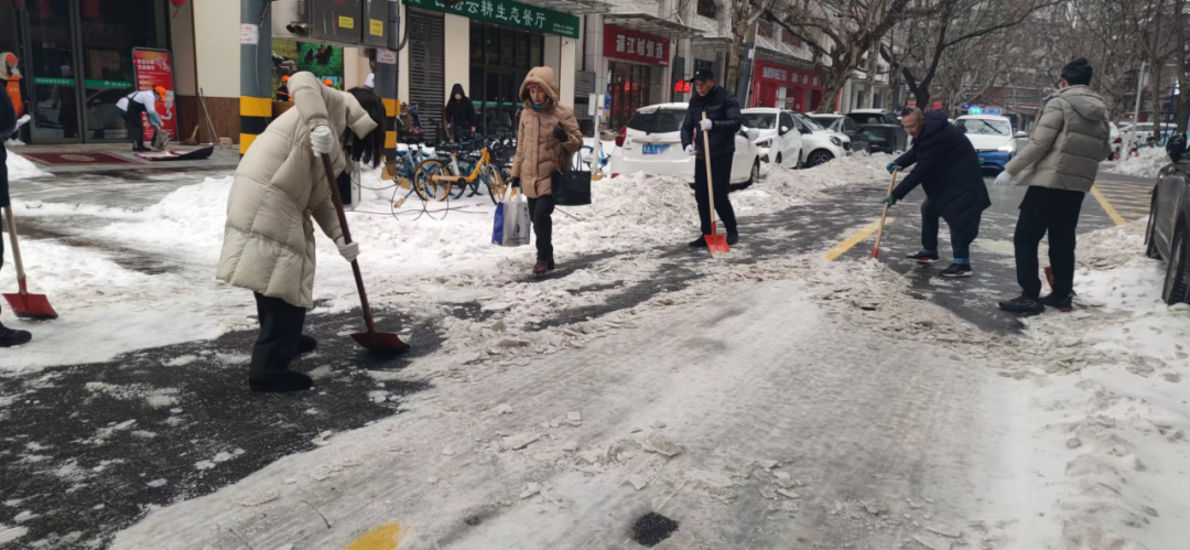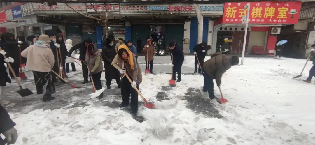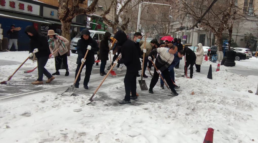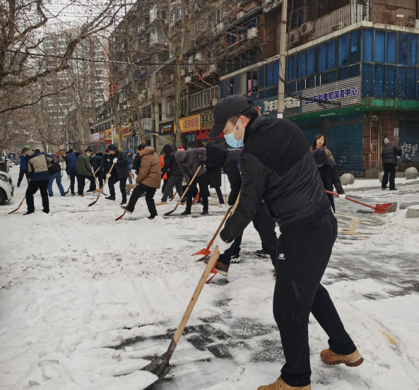 积极响应号召,干部职工走进街头巷尾、主次干道,参加扫雪除冰志愿服务活动