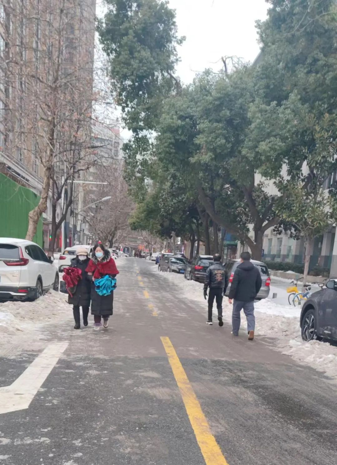 经过不懈努力,武汉市财政局门前三包区域、整条西马路等地上积雪被清扫一空
