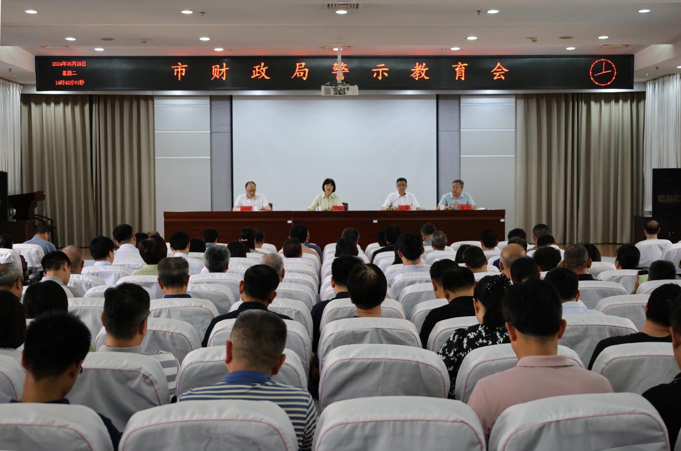 5月28日下午,市财政局召开警示教育会,传达学习习近平总书记关于党的纪律建设的重要论述,剖析财政系统违纪违法典型案例,集中观看警示教育片。局党组书记、局长李首文主持会议并讲话。