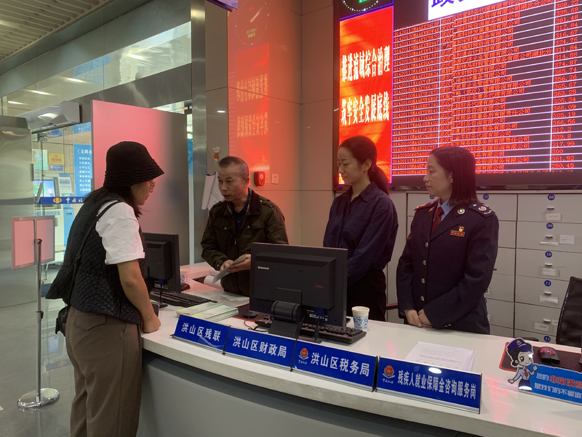 上午,洪山区税务局、区财政局和区残联派出业务骨干在区税务局办税大厅为企业提供残保金政策咨询服务,并结合文件和宣传册向企业宣传残保金的征收、缴纳和减征免征优惠政策,详细讲解申报流程,确保企业对相关政策应知尽知,应享尽享。