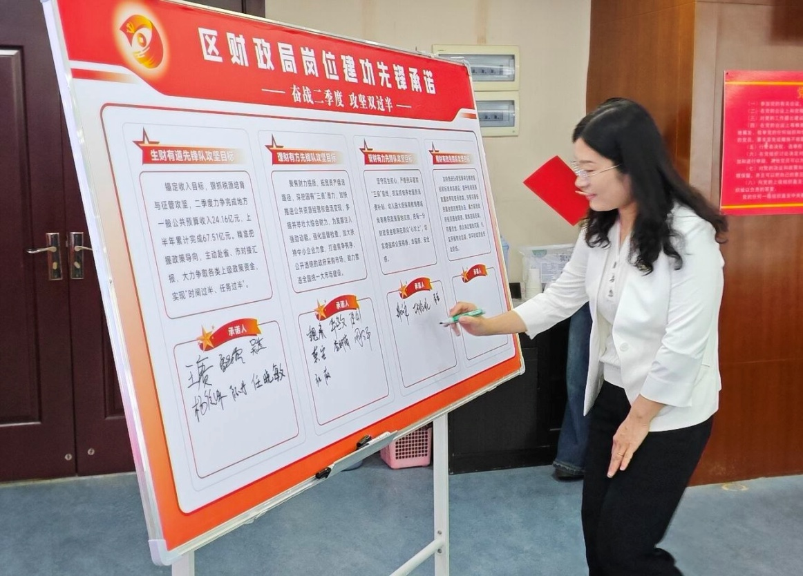 “我们将以法治为尺、以民心为秤,牢固树立和践行正确政绩观……凝心聚力、奋勇争先,以昂扬之姿奋战二季度、以实干之力攻坚双过半。”一句句承诺,立下的是军令状,扛起的是硬责任,展现了财政干部争先进位、再立新功的坚定决心。
