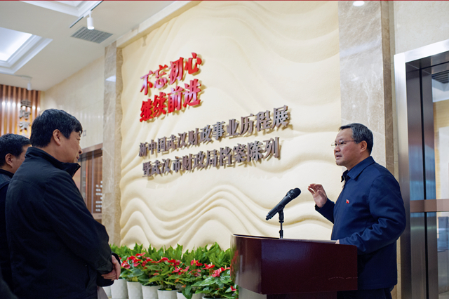 2月8日,武汉市财政局档案陈列暨新中国武汉财政事业历程展开放。市财政局以“缅怀历史、展望未来,思考自己在财政改革发展历程中如何更好发挥作用”为主题,组织全局各处室单位、各支部主要负责人在陈列展馆开展主题党日活动。局党组书记、局长周学云参加活动并讲话。