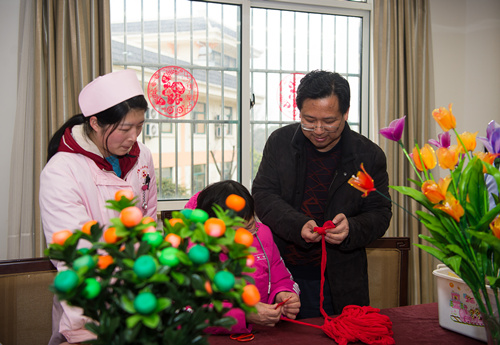据介绍,居住在武汉市第二社会福利院的弱势群体大部分是精神、智力方面的残障人员,生活治理能力差,有些还存在严重的破坏行为,这里的护理工作人员实行24小时值班制度,全力保障院内安全、有序。在工作室制作手工艺的这些人员大多是儿童福利院的孤儿达到一定年龄后移送来的,他们多无亲属,智力方面和正常人差距不大,能够发挥一些专长和余热。在福利院的挖掘下,他们被安排到工作室制作手工艺,手工花、十字绣、中国结都是他们的拿手绝活。