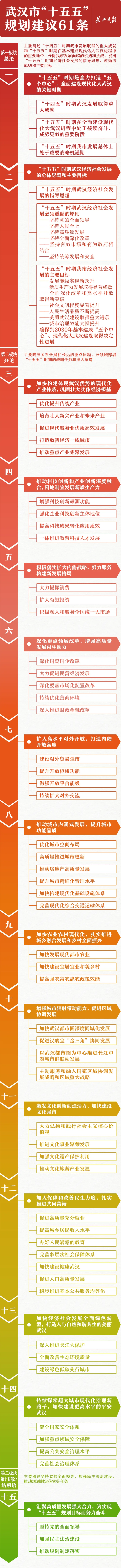 《中共武汉市委关于制定全市国民经济和社会发展第十五个五年规划的建议》共有15个部分、61条,分为三大板块。