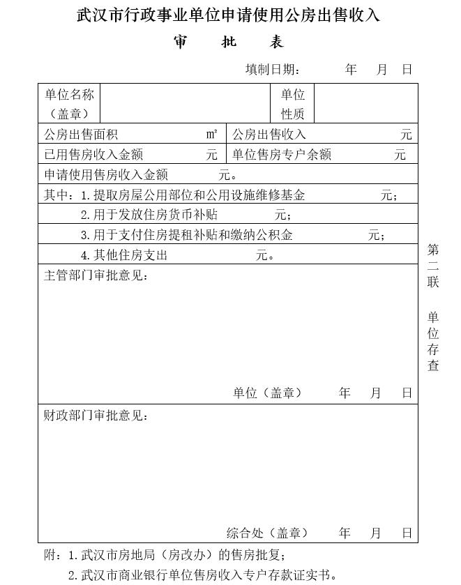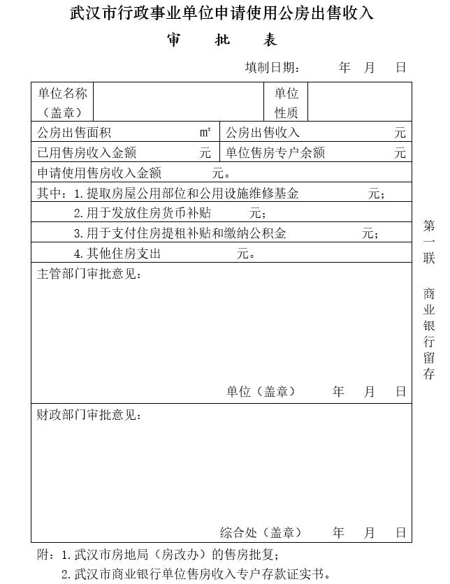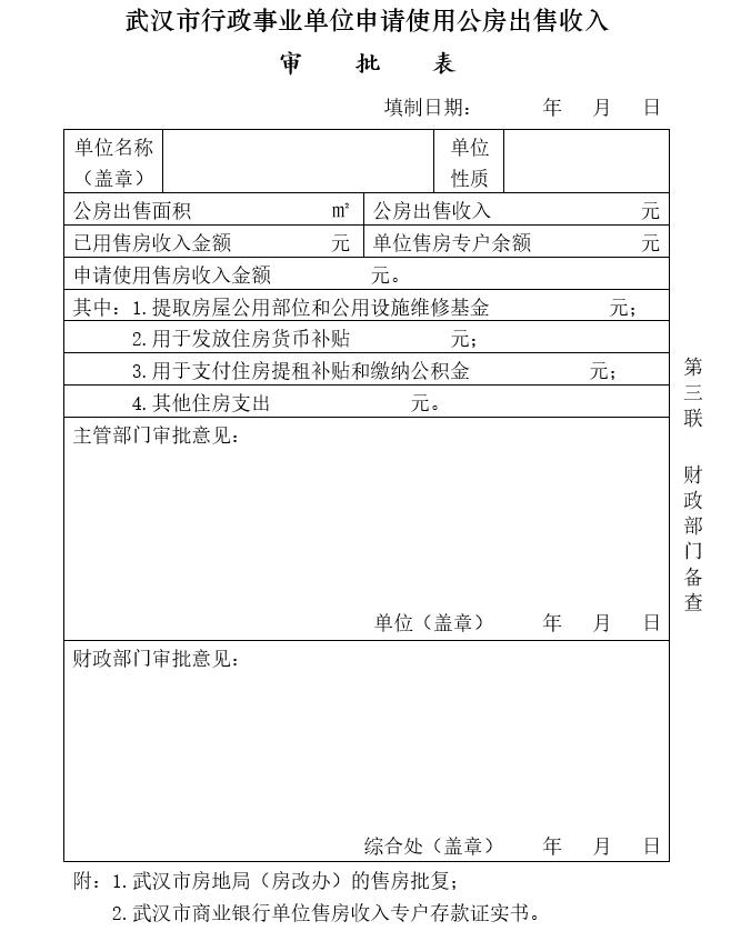 01 武汉市行政事业单位申请使用公房出售收入审批表.doc