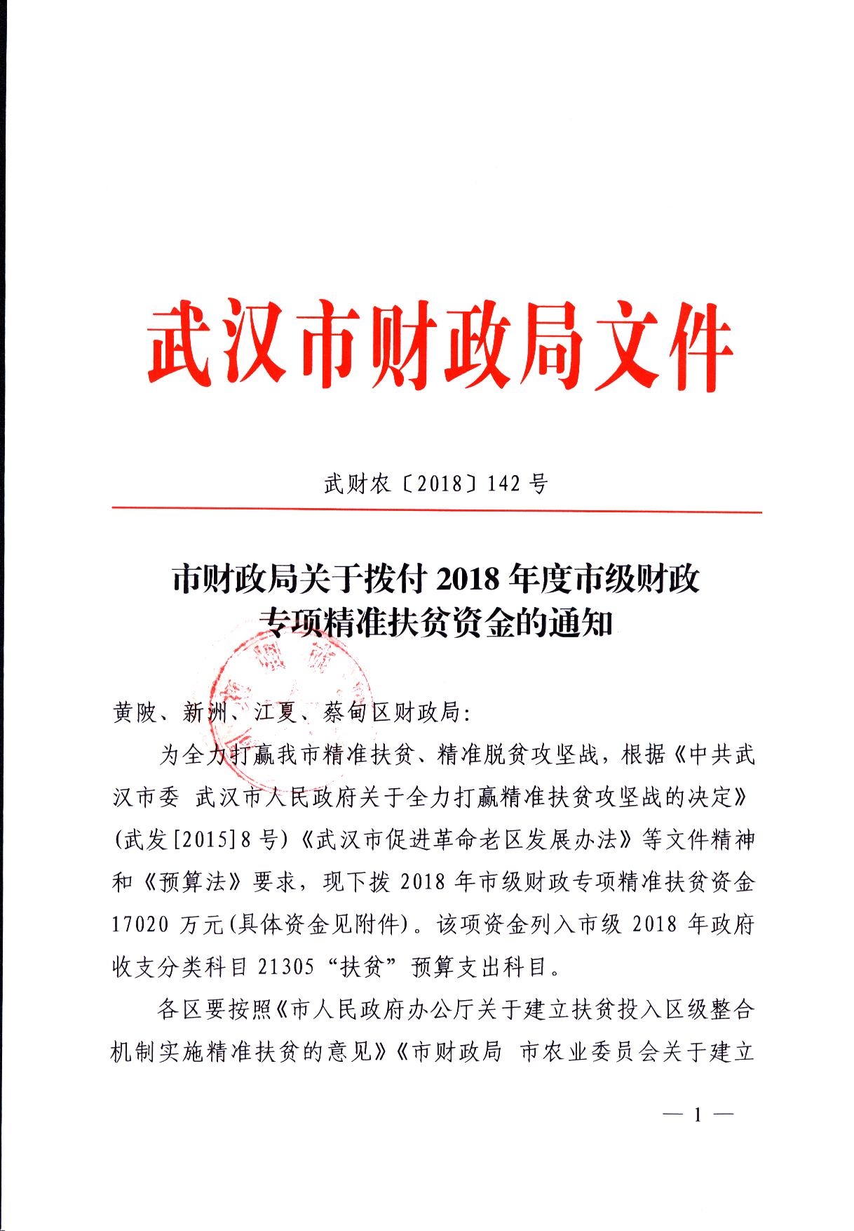 市财政局关于拨付2018年度市级财政专项精准扶贫资金的通知