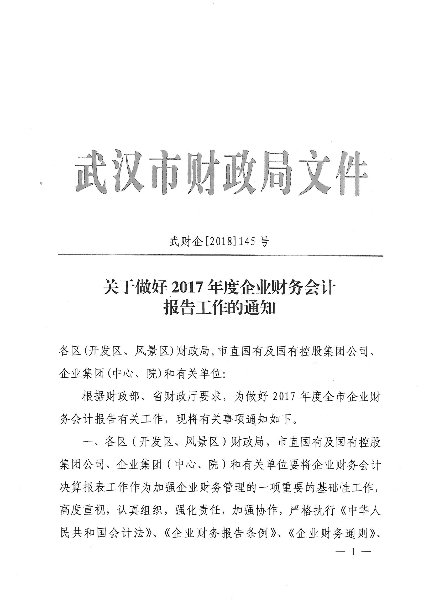 关于做好2017年度企业财务会计报告工作的通知