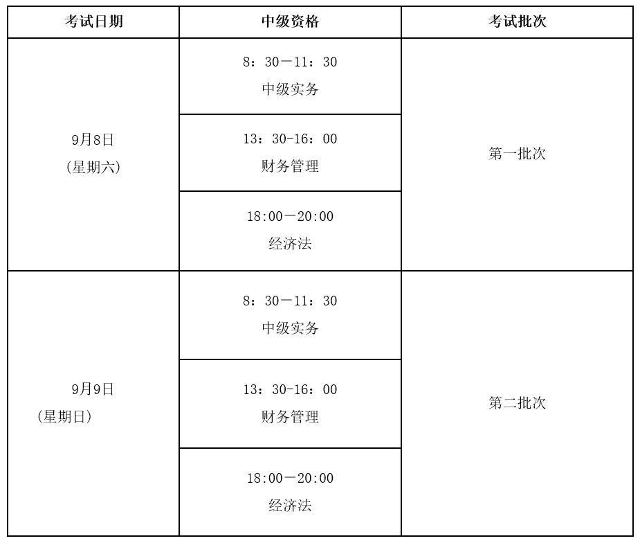 1.中级资格考试于9月8日—9日举行,共两个批次。具体科目和考试时间如下: