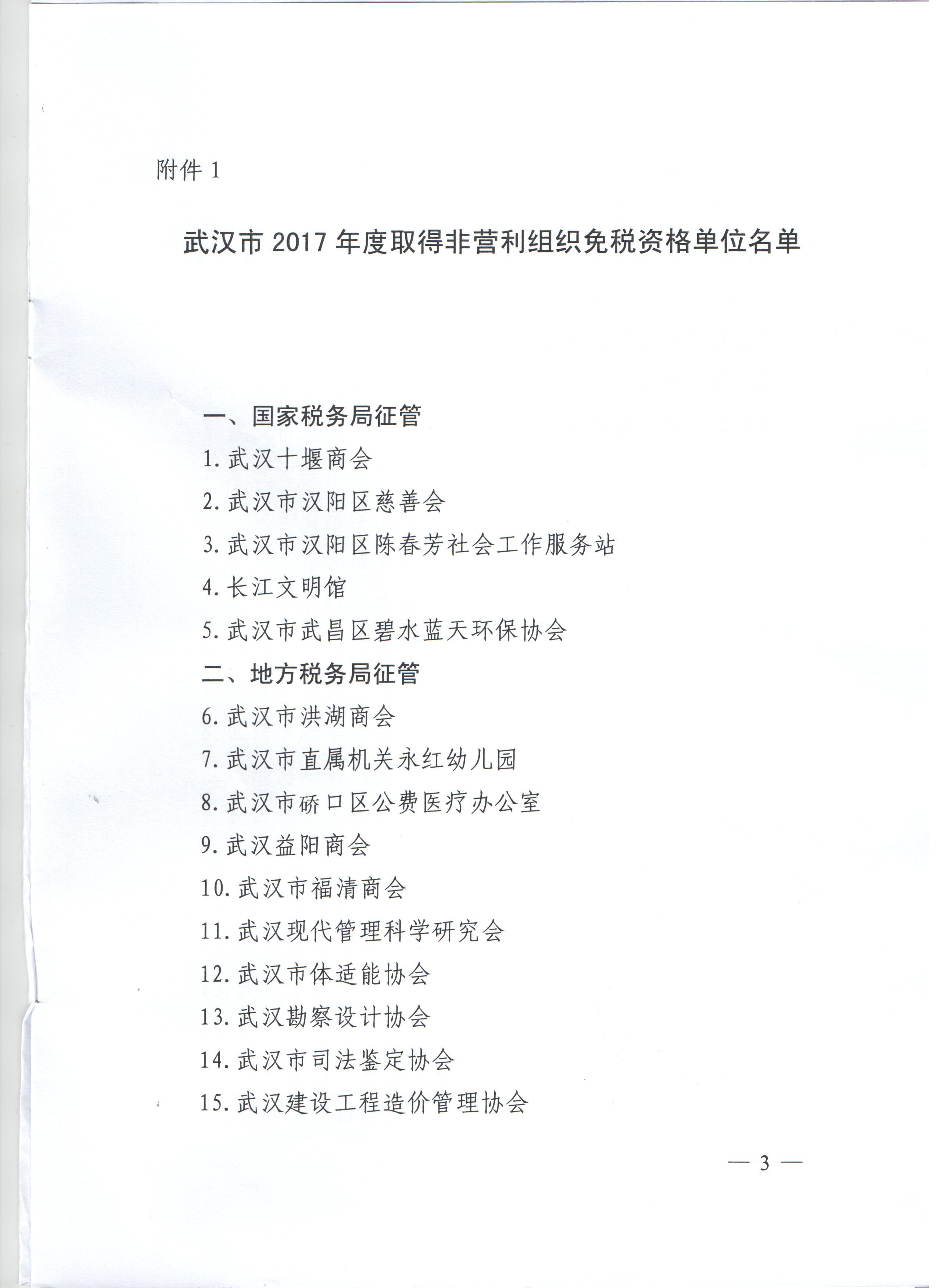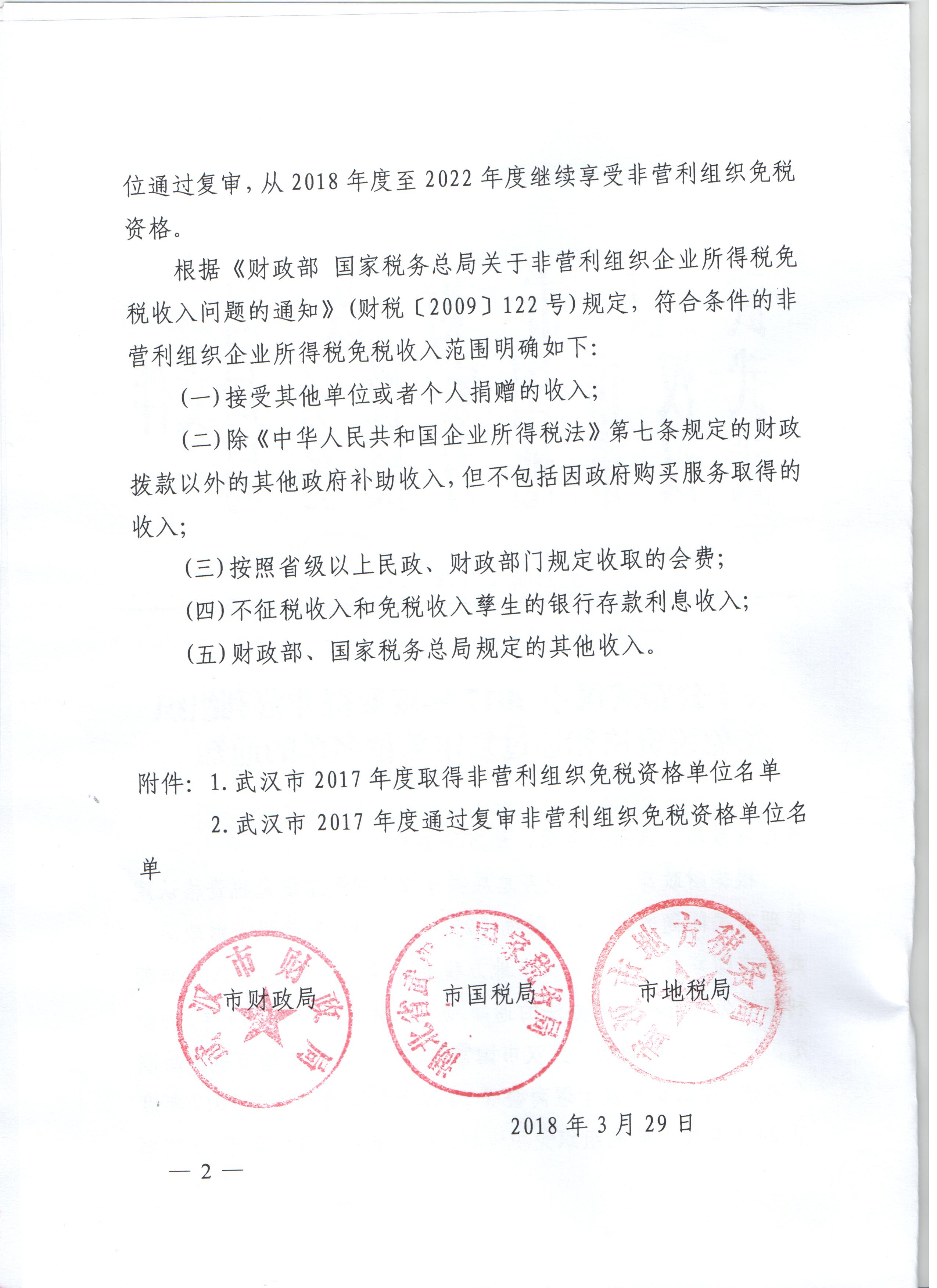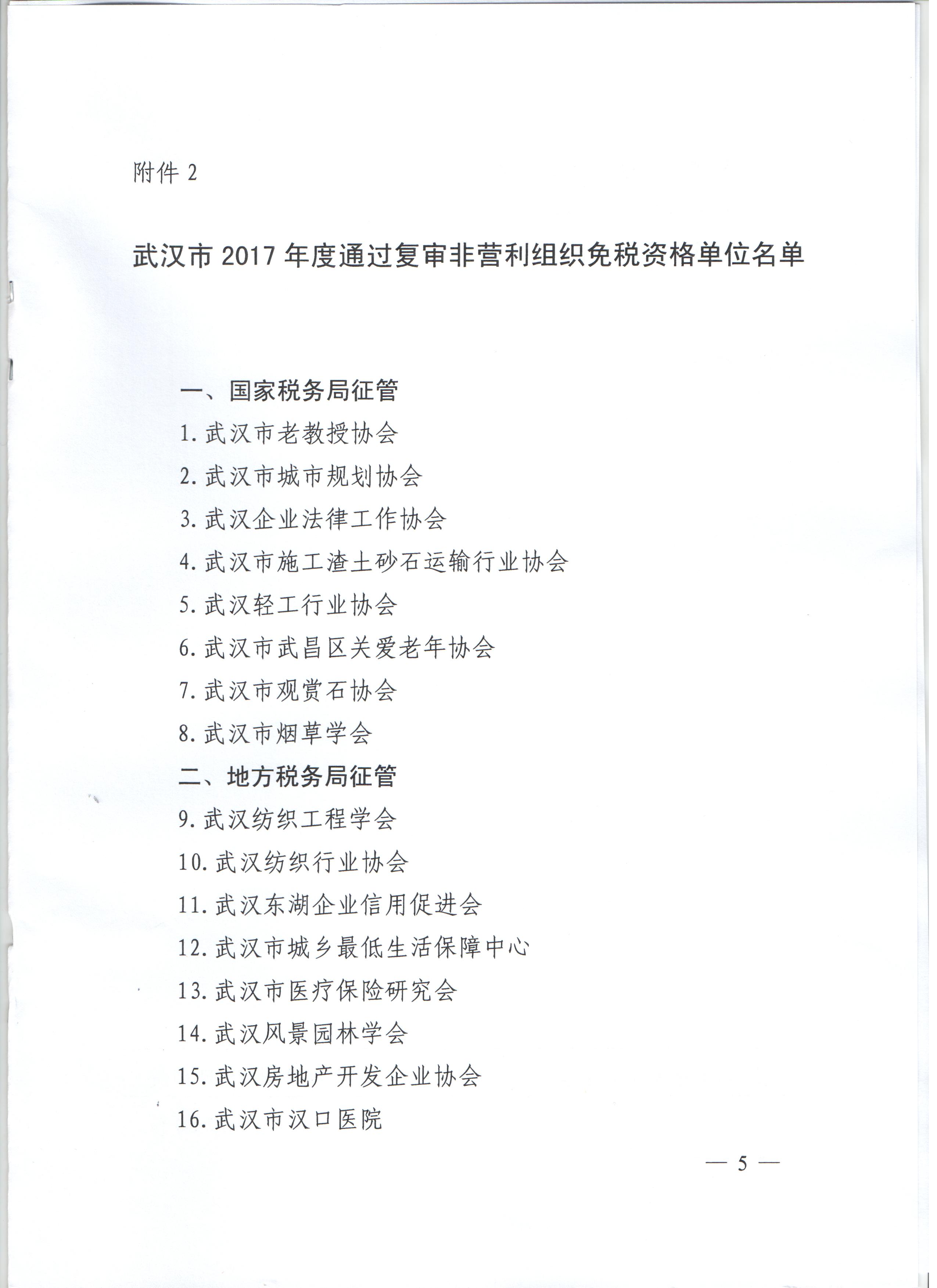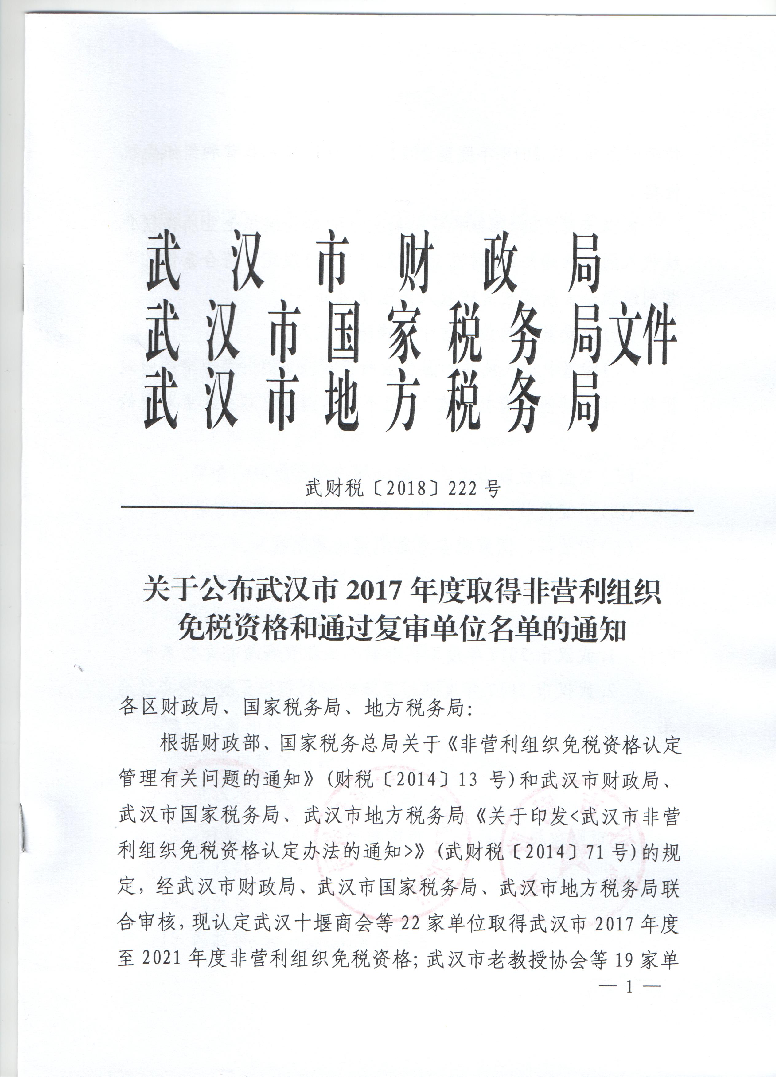 关于公布武汉市2017年度取得非营利组织免税资格和通过复审单位名单的通知