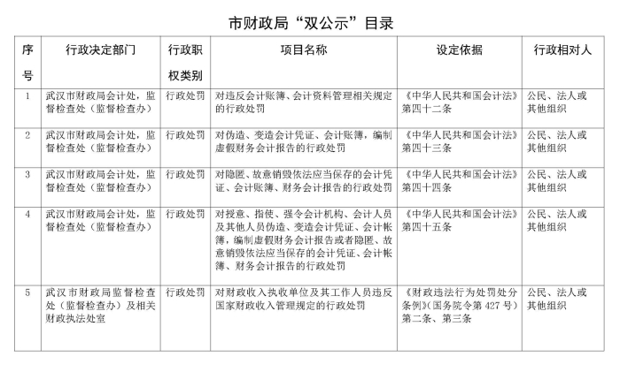 市财政局“双公示”目录