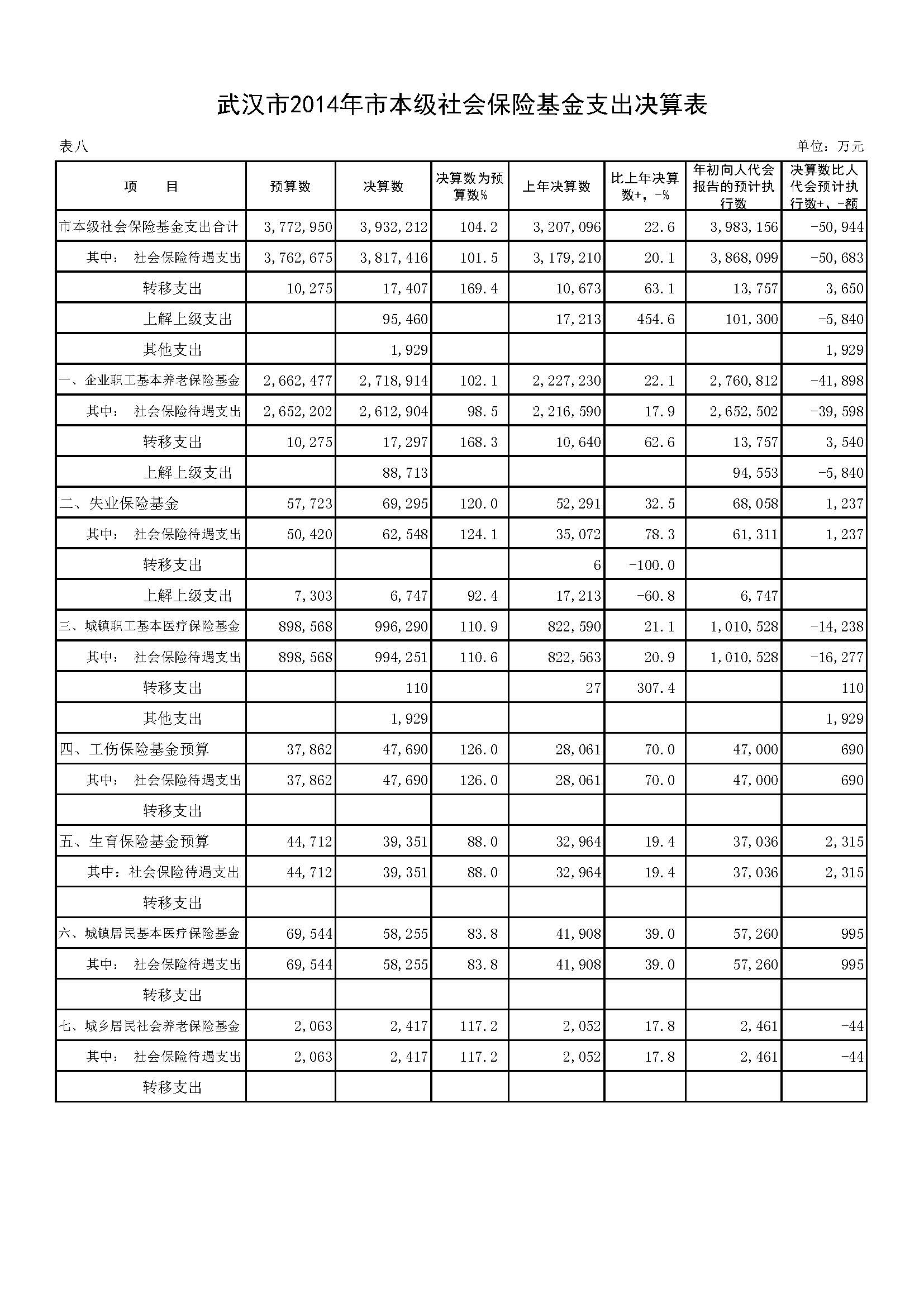表8:武汉市2014年市本级社会保险基金支出决算表