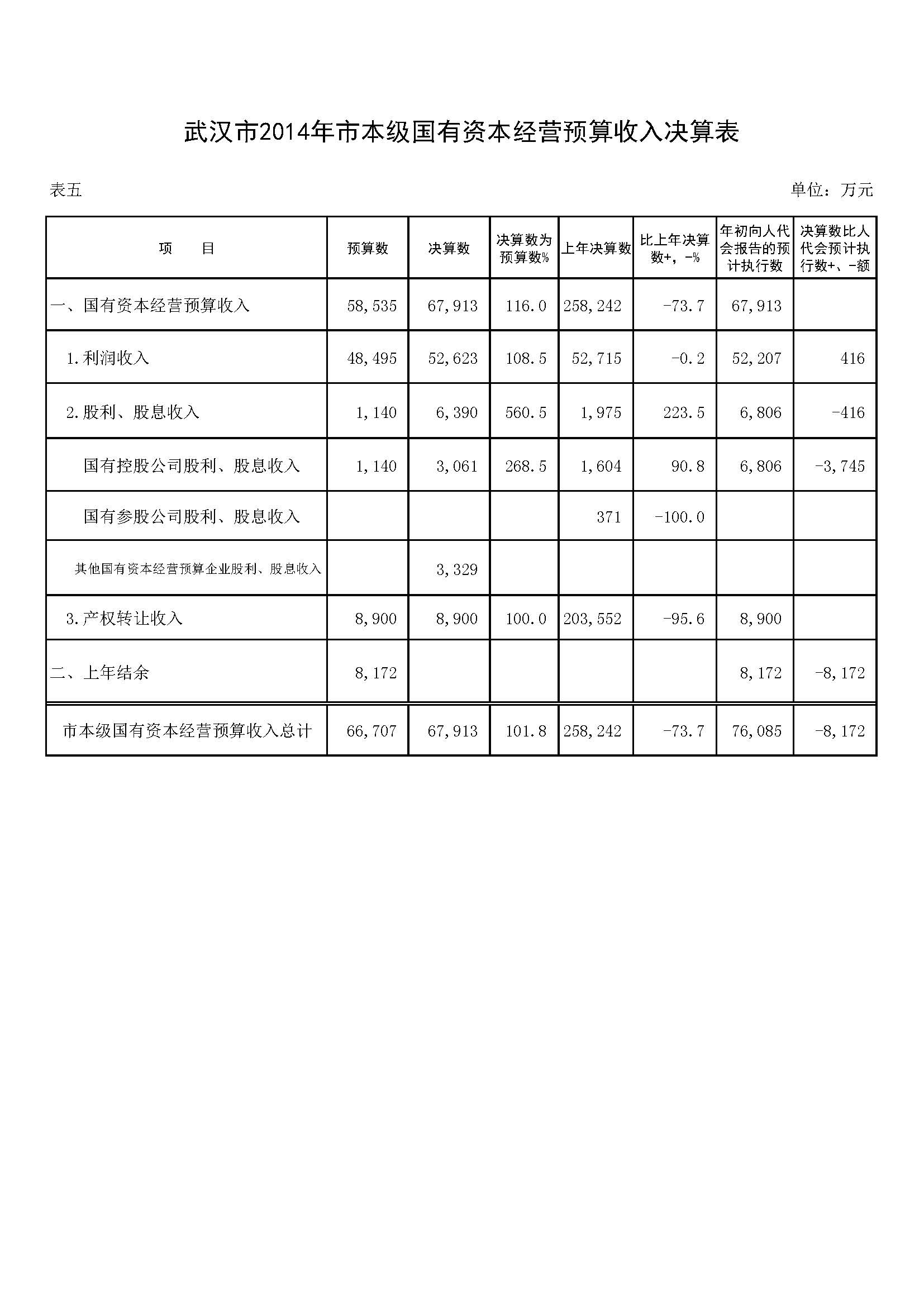 表5:武汉市2014年市本级国有资本经营预算收入决算表