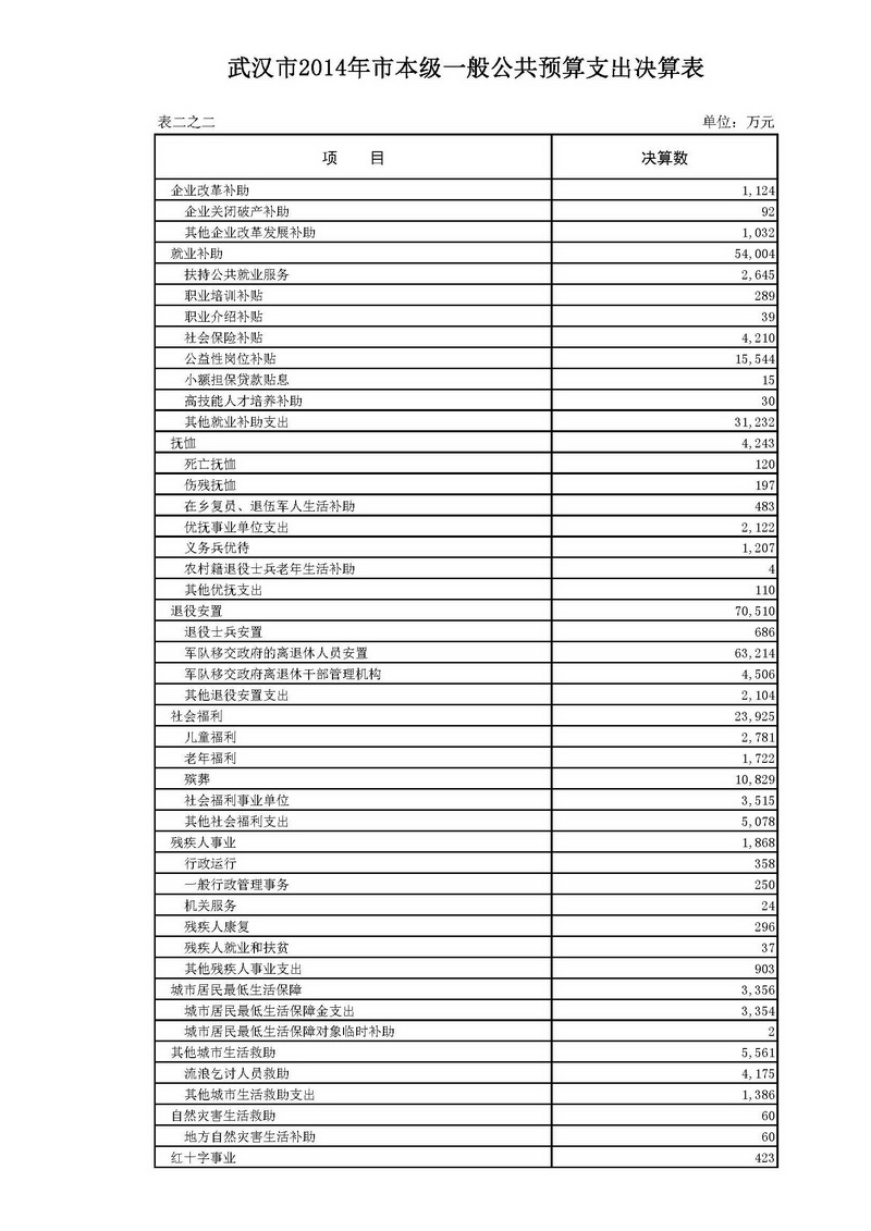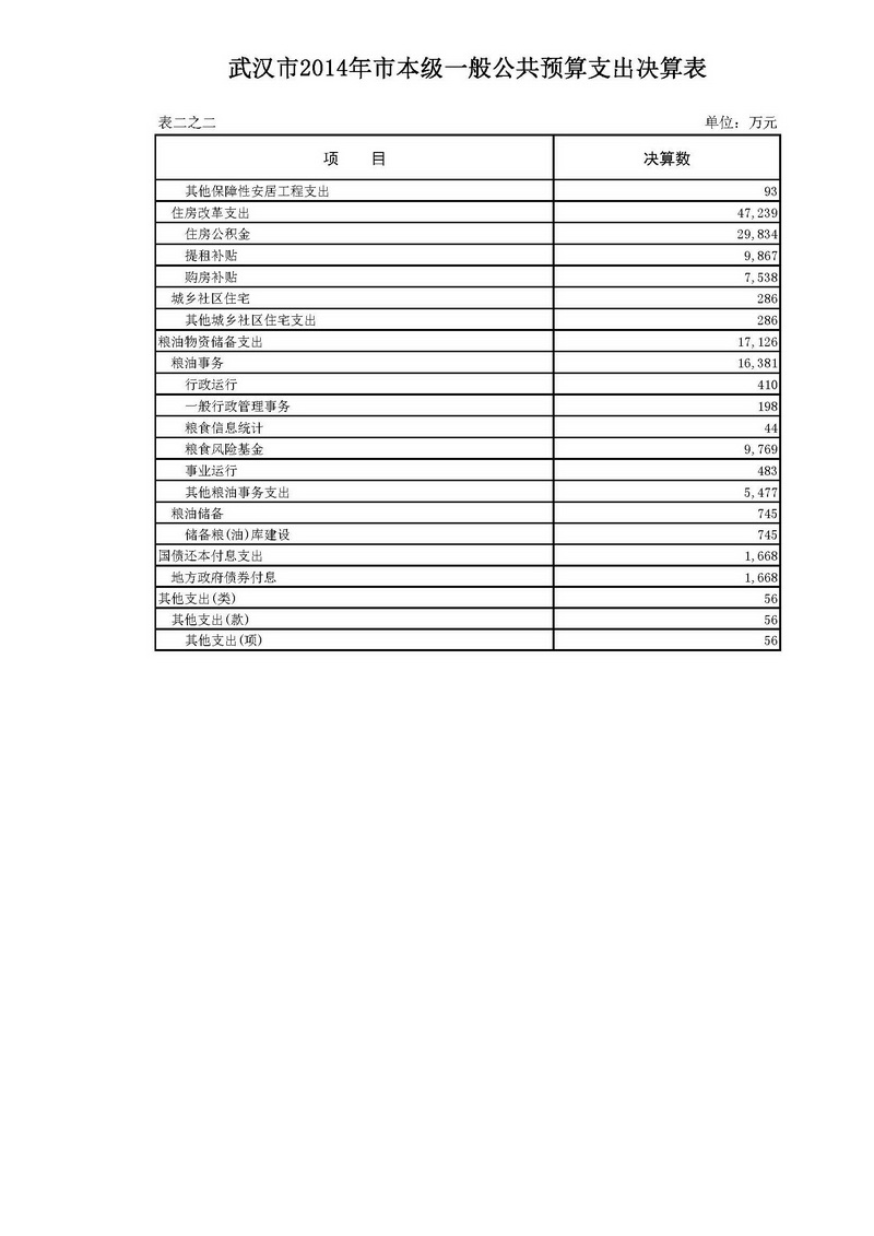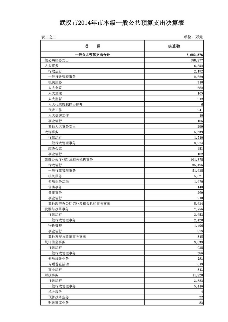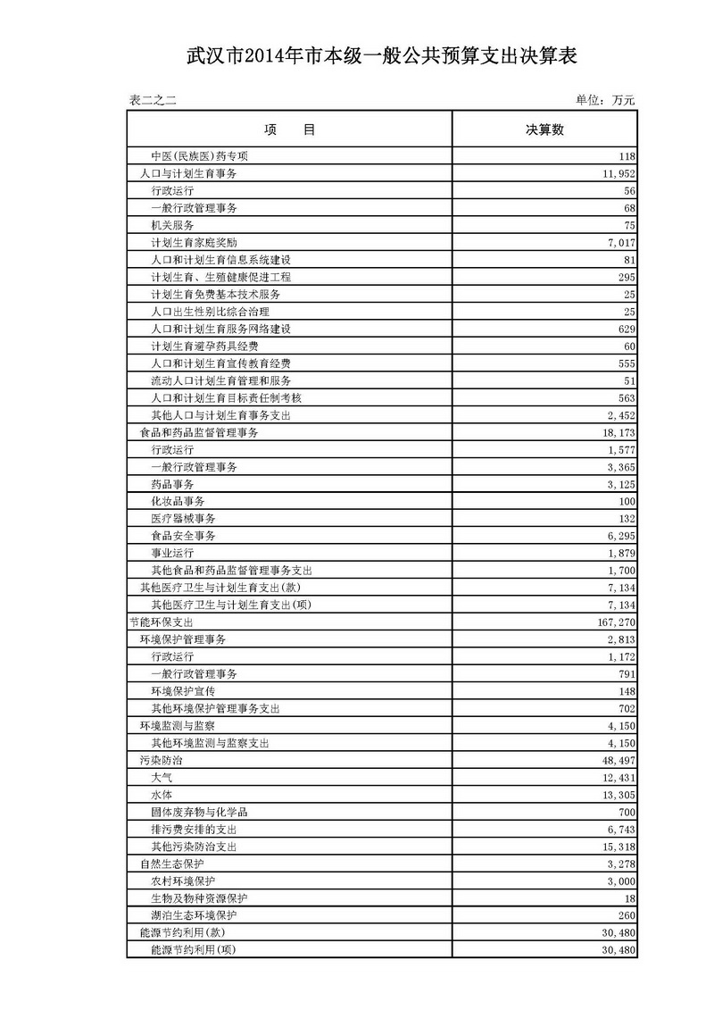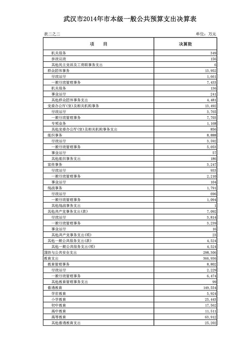 表2:武汉市2014年市本级一般公共预算支出决算表(表之二)