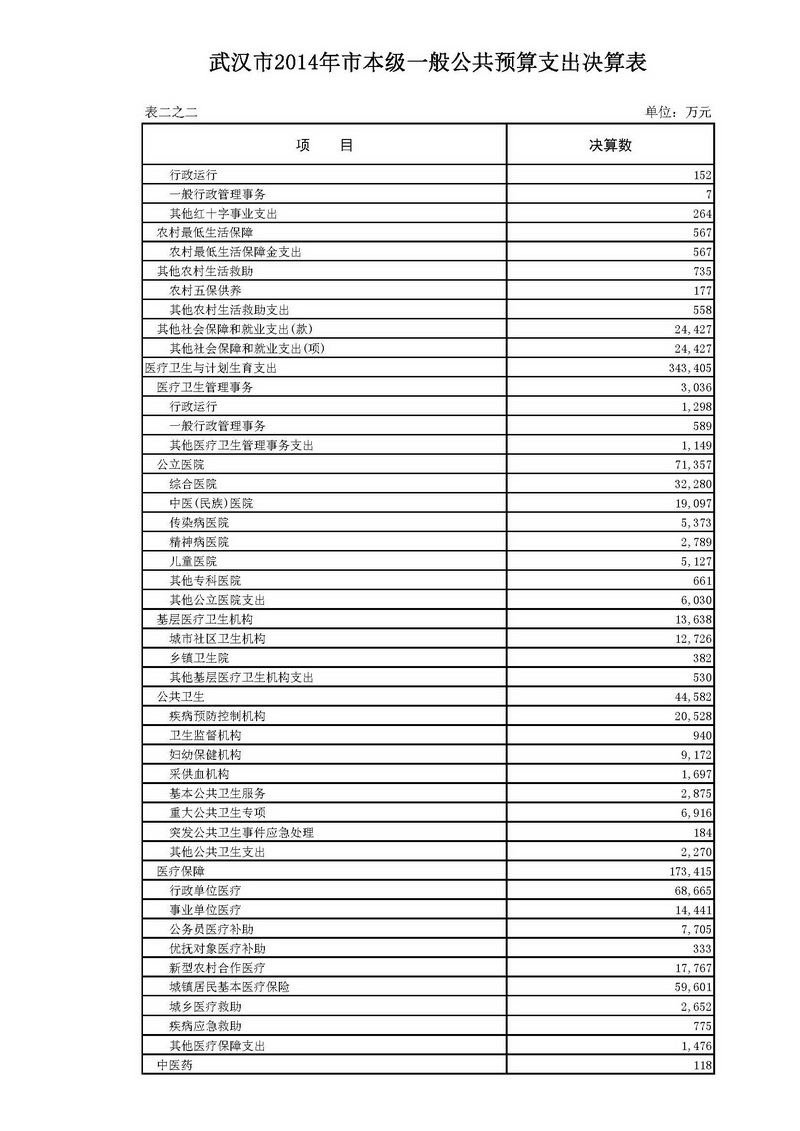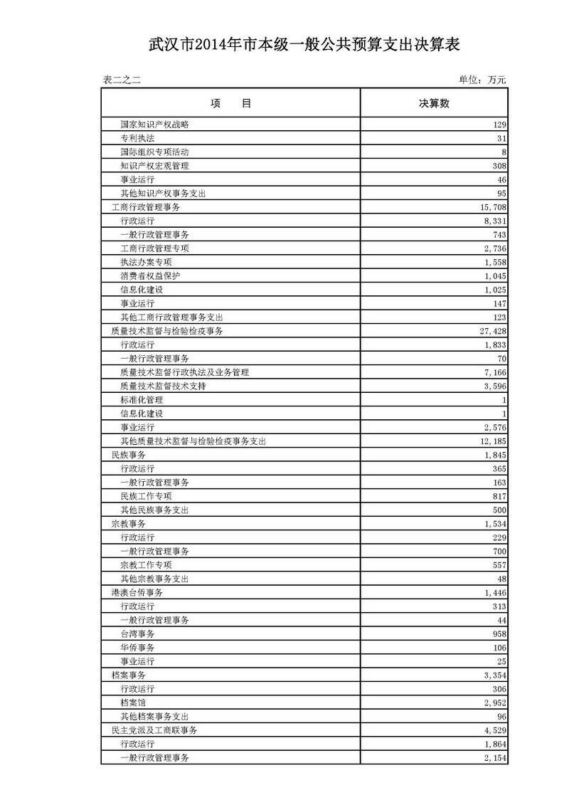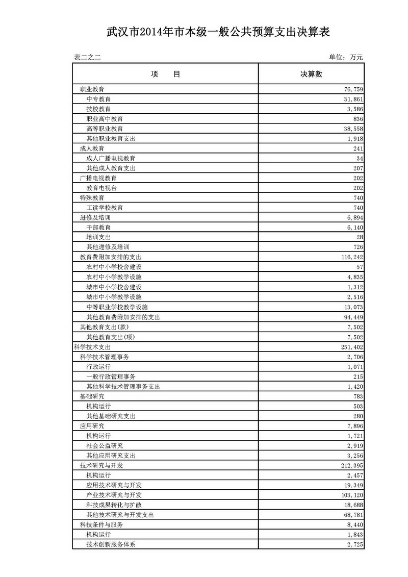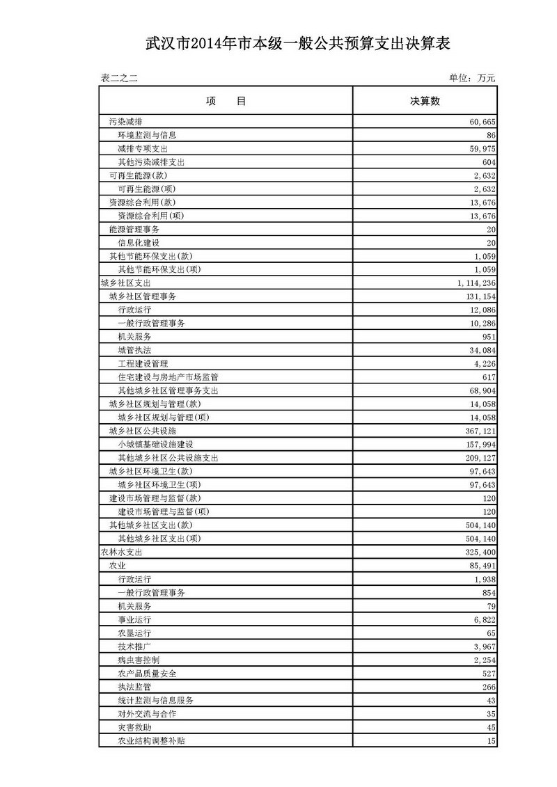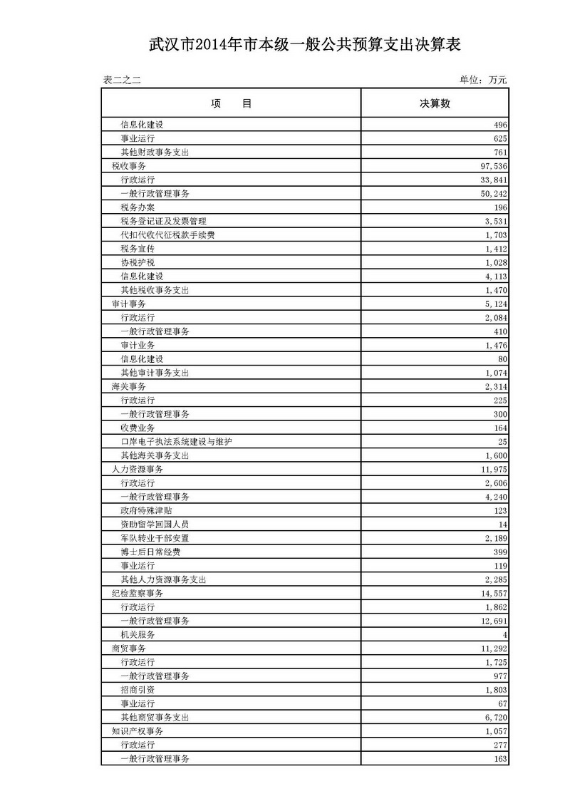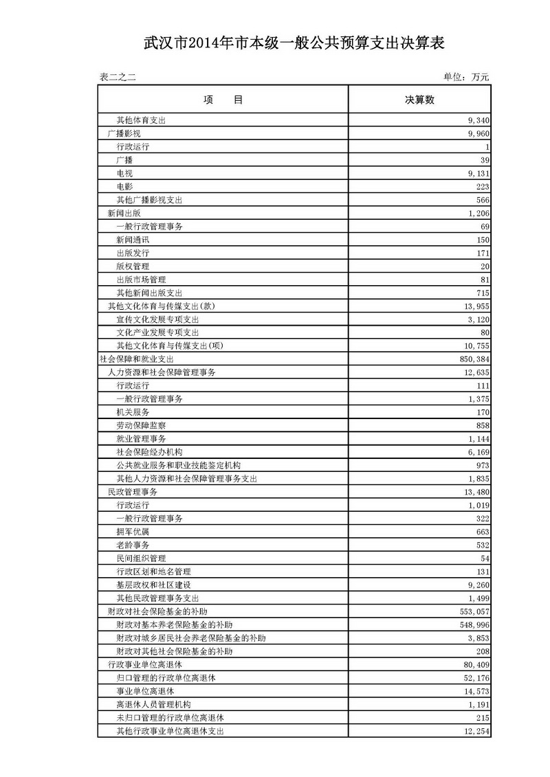 表2:武汉市2014年市本级一般公共预算支出决算表(表之二)