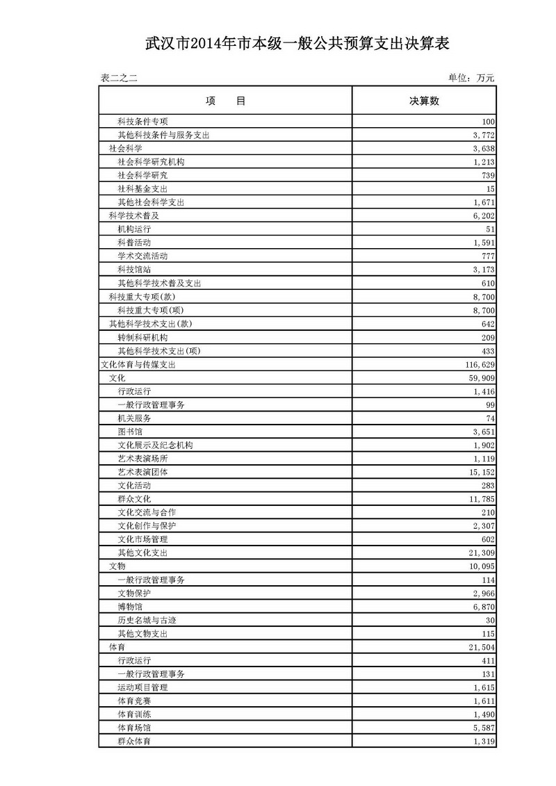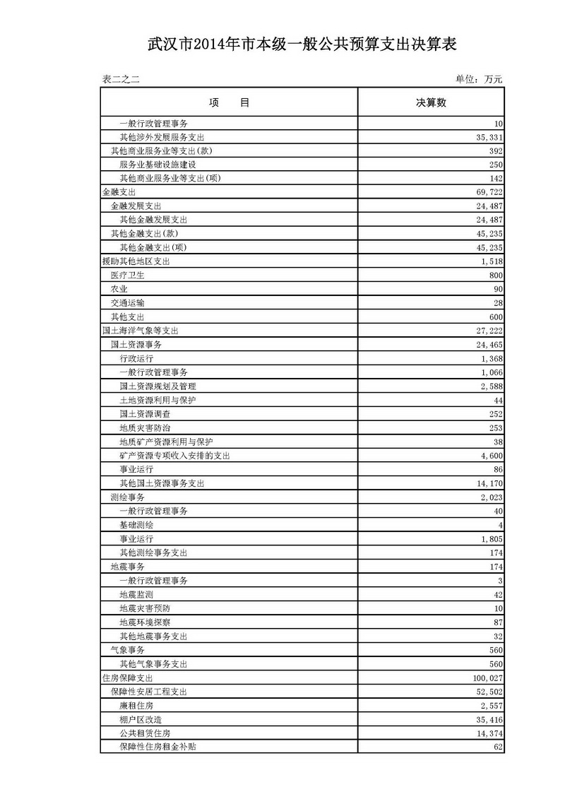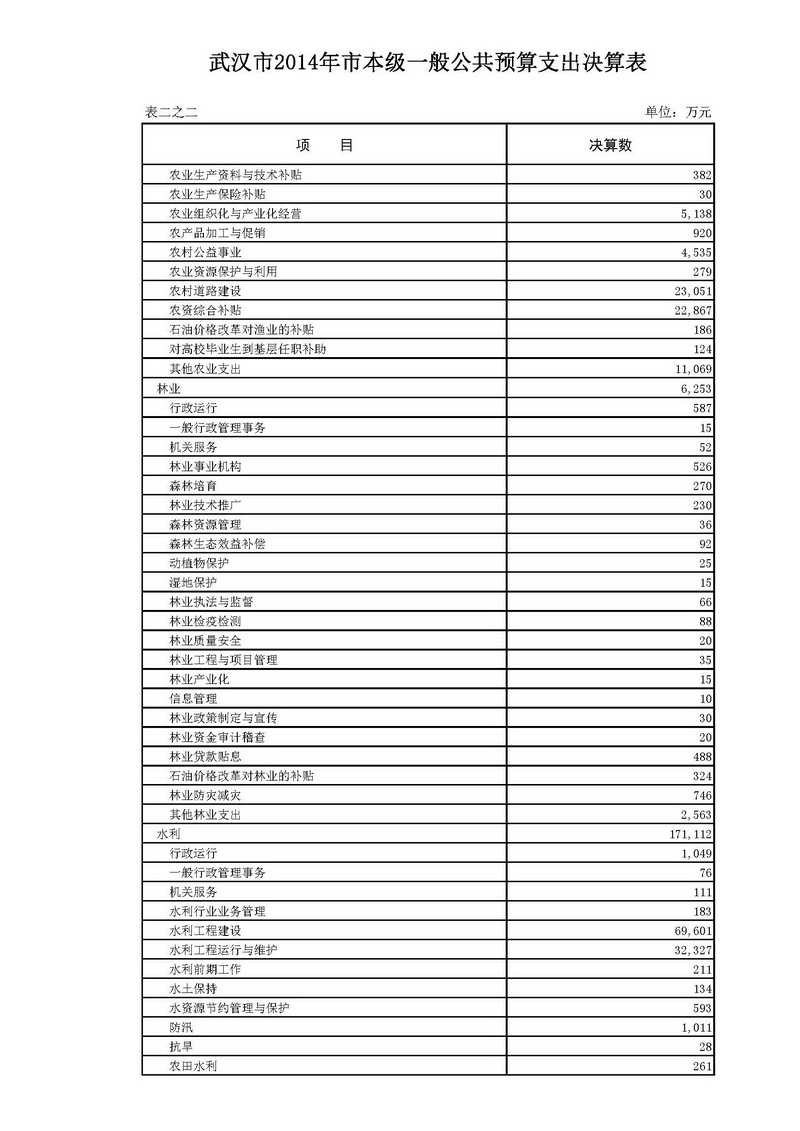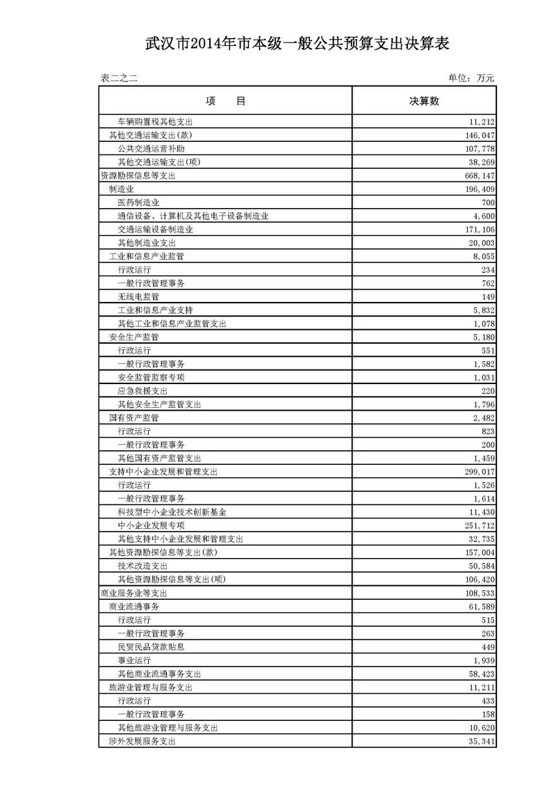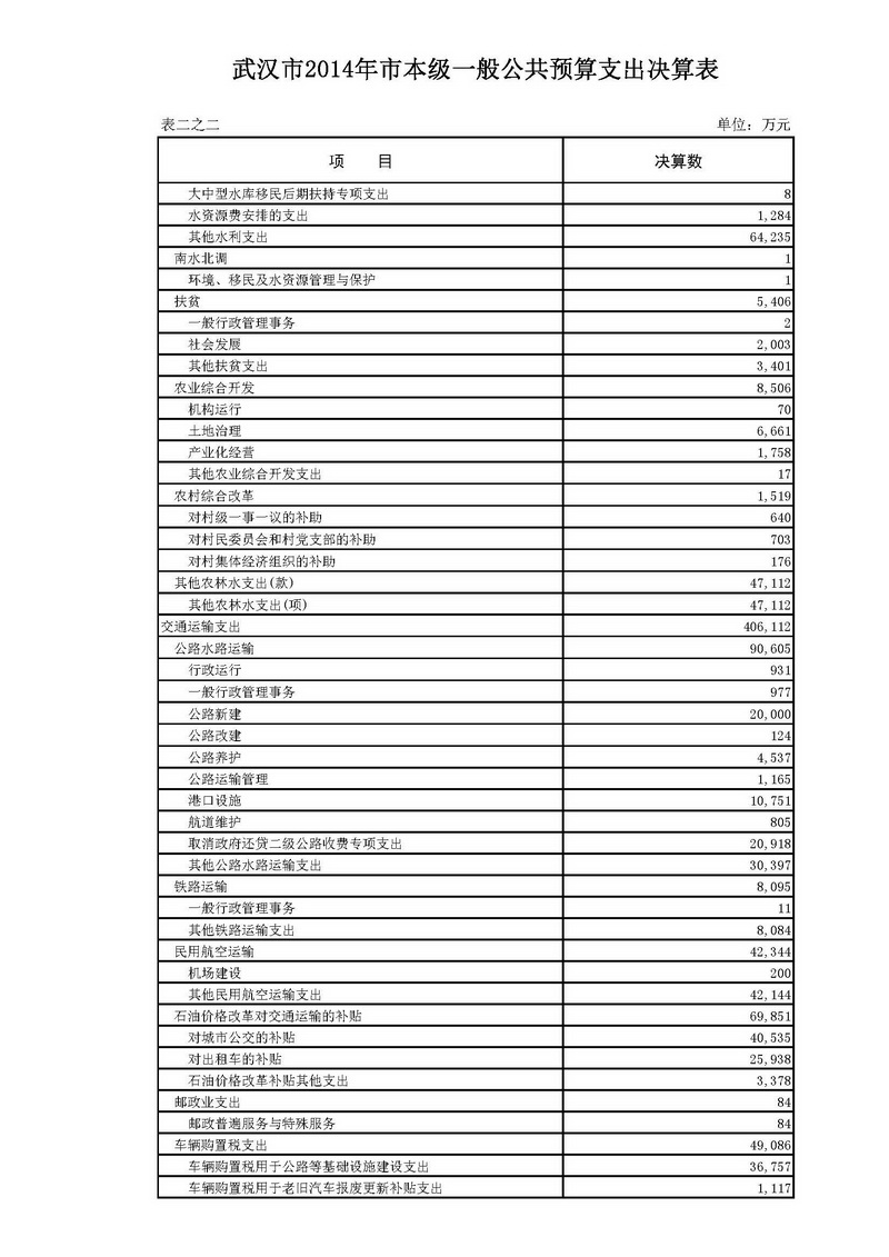表2:武汉市2014年市本级一般公共预算支出决算表(表之二)