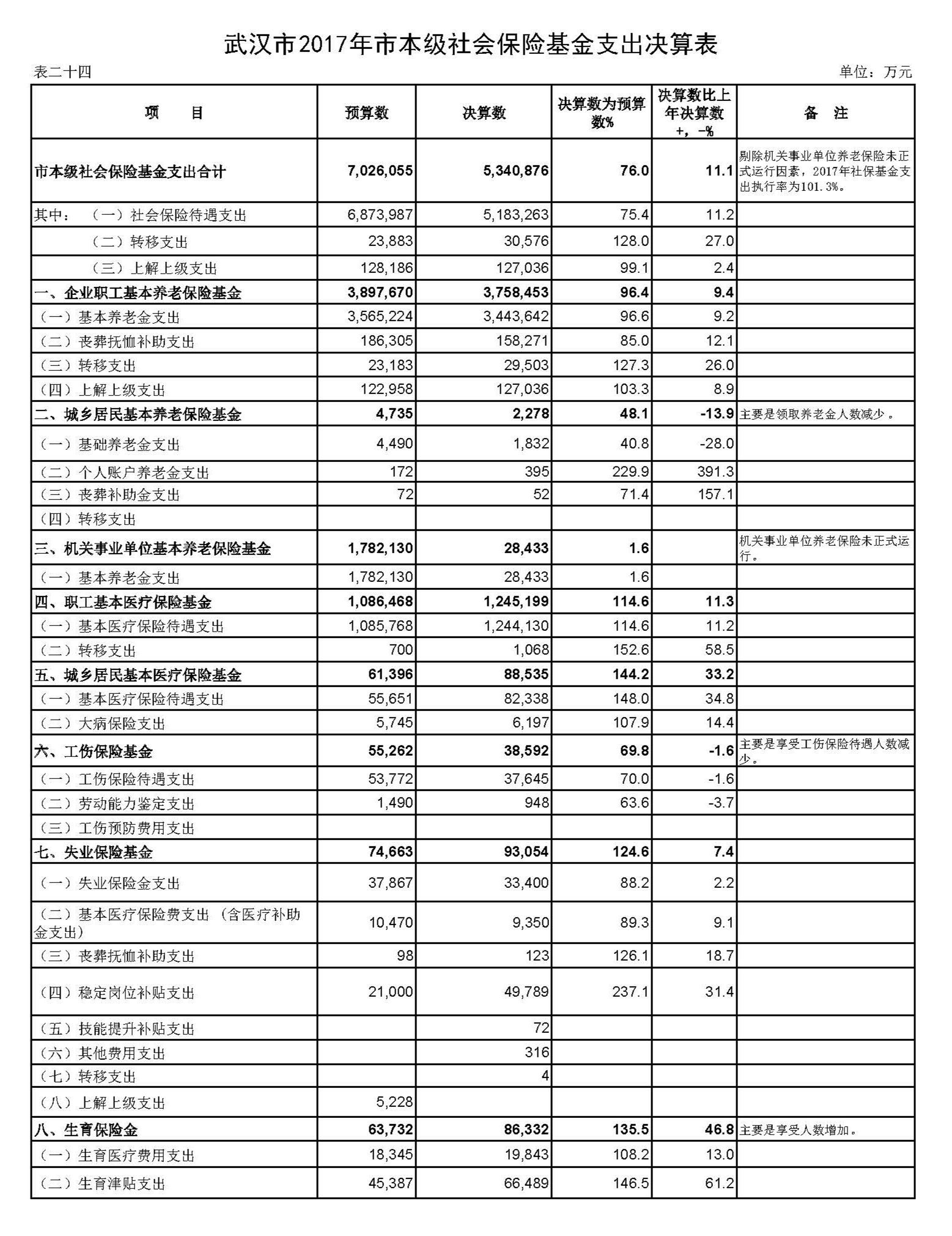 表24:武汉市2017年市本级社会保险基金支出决算表