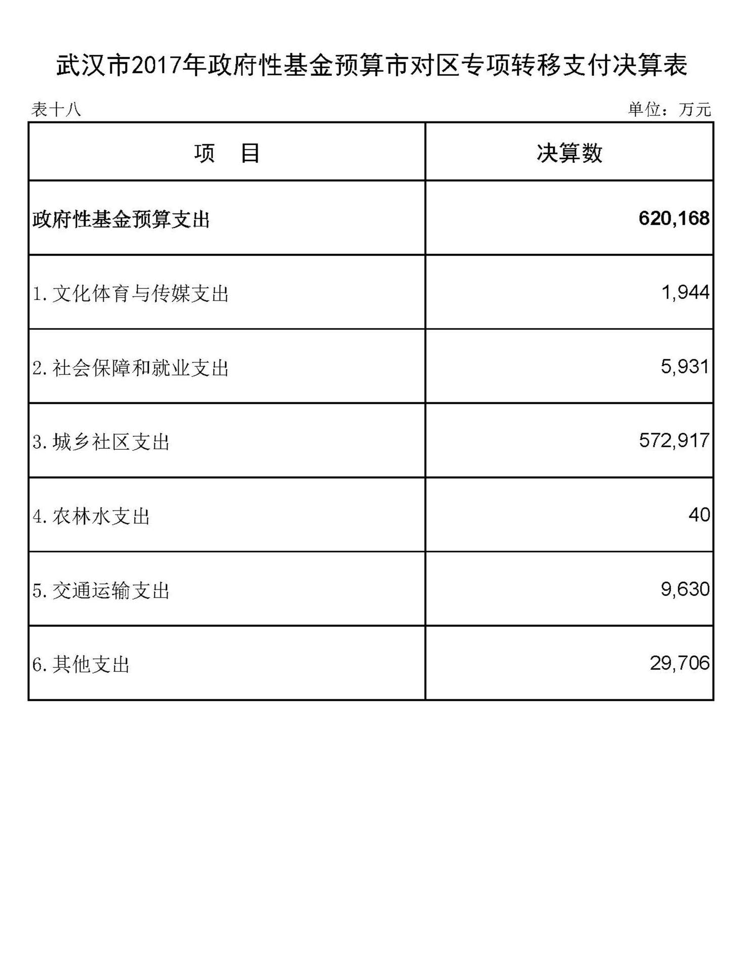 表18:武汉市2017年政府性基金预算市对区专项转移支付决算表