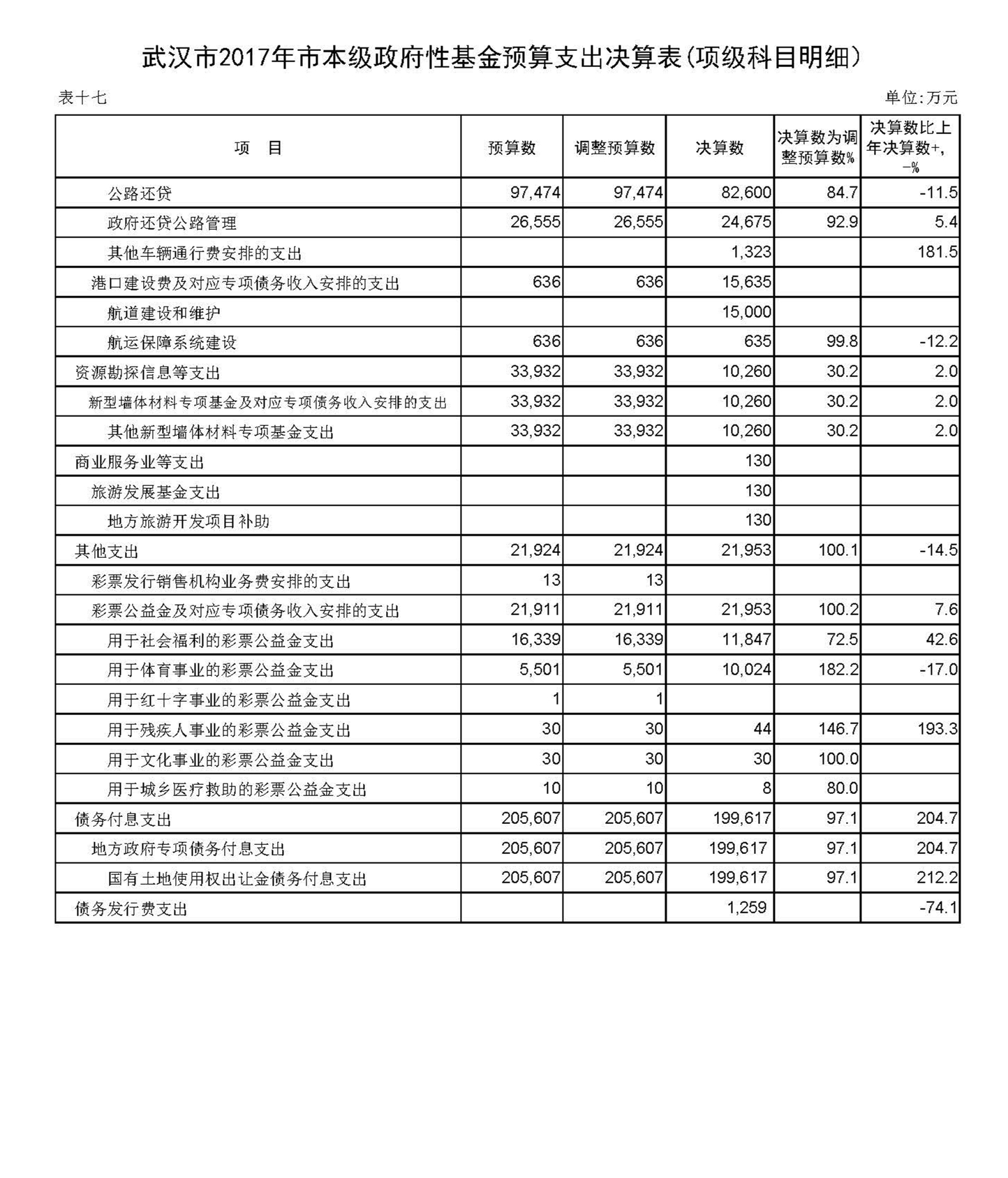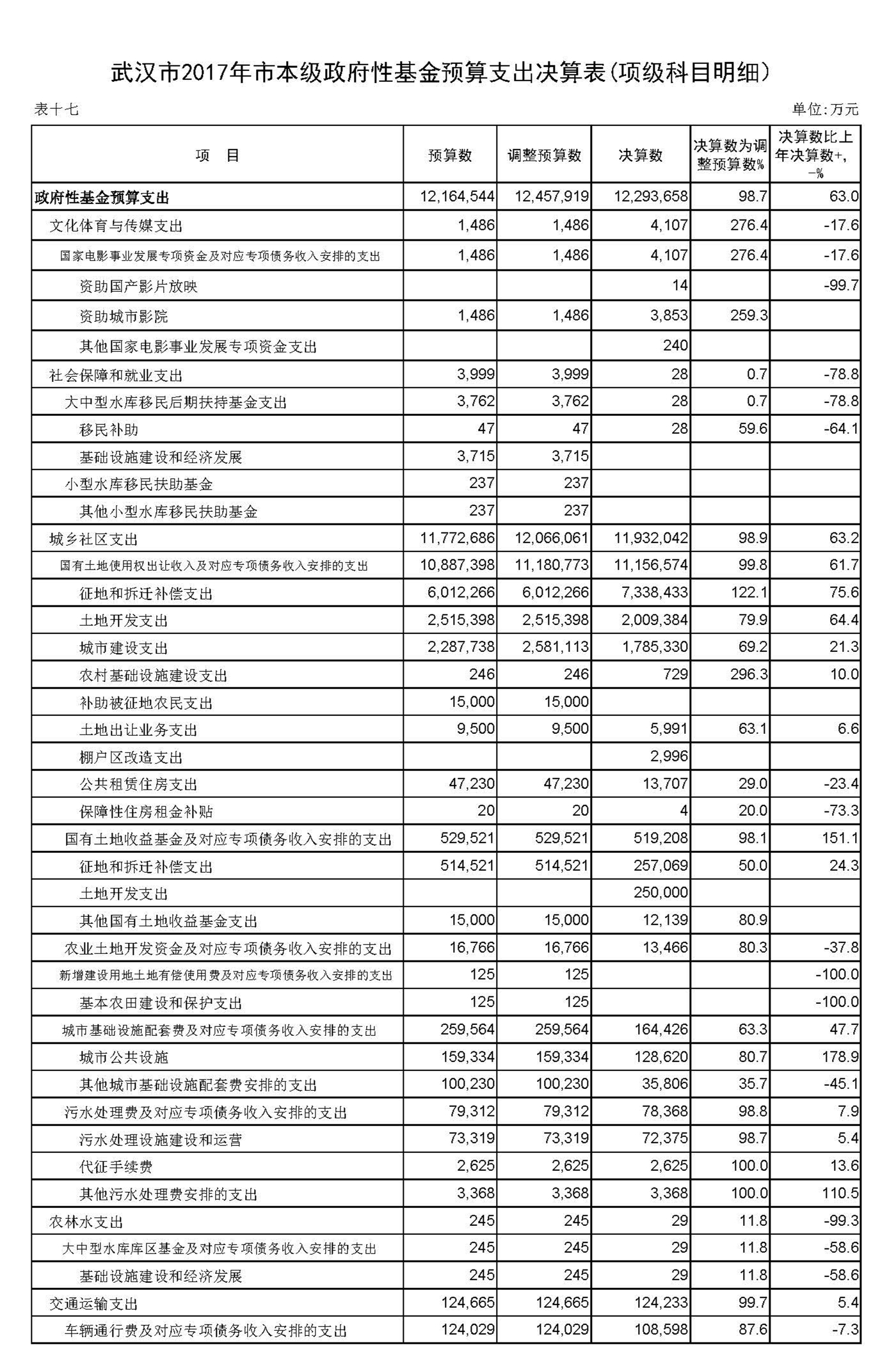表17:武汉市2017年市本级政府性基金预算支出决算表(项级科目明细)