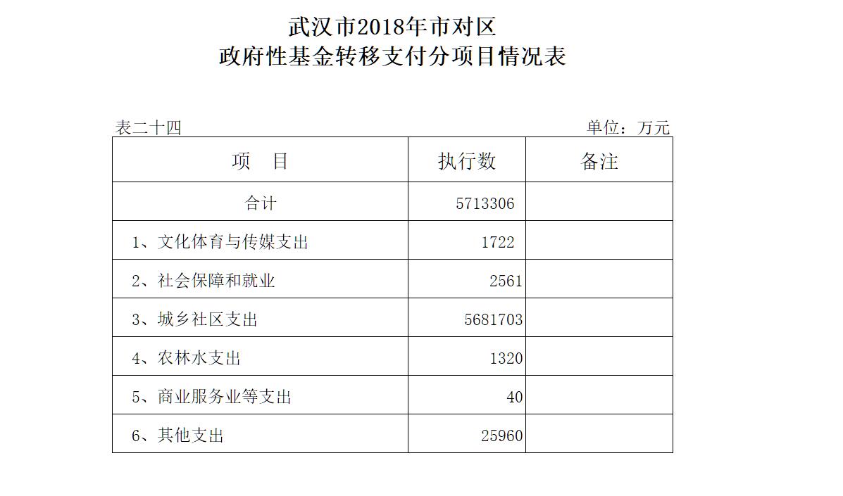 表24:武汉市2018年市对区政府性基金转移支付分项目执行情况表