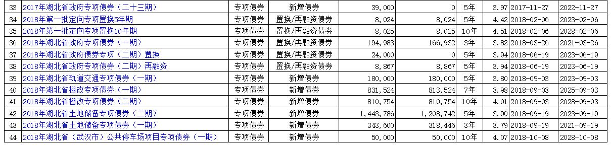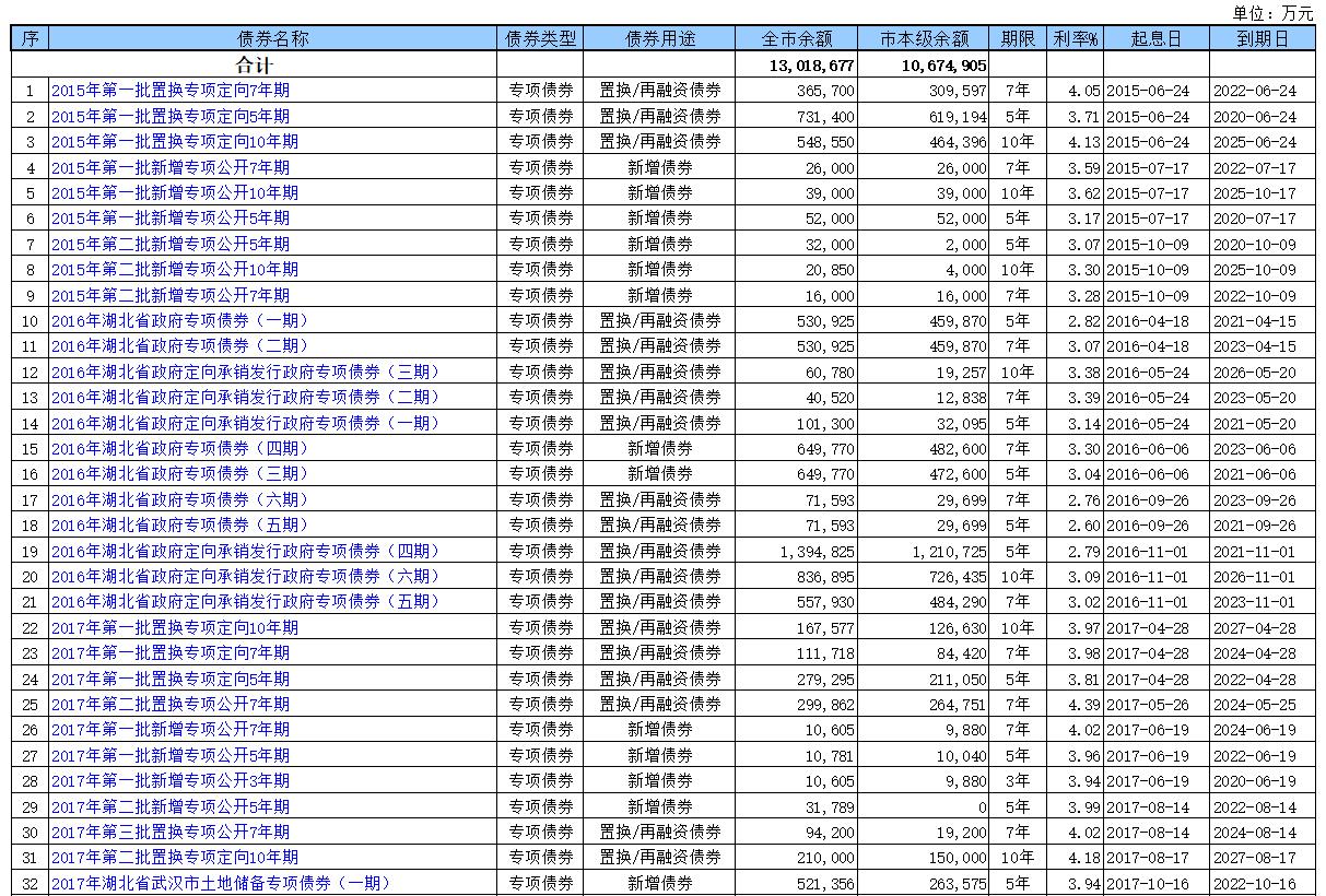 2018年末武汉市专项债券余额情况表