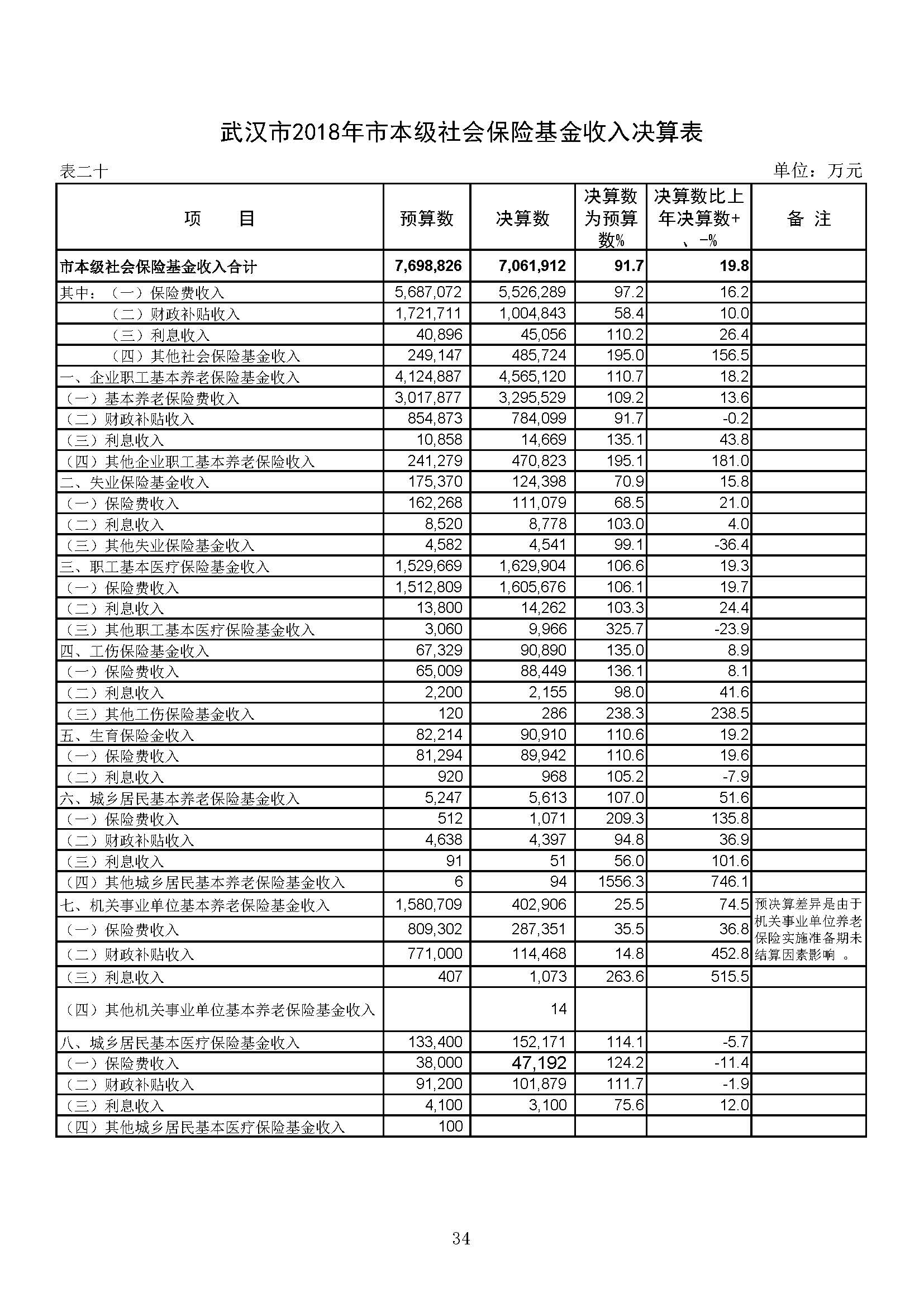 表20:武汉市2018年市本级社会保险基金收入决算表