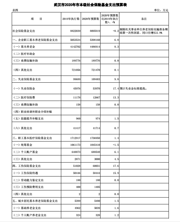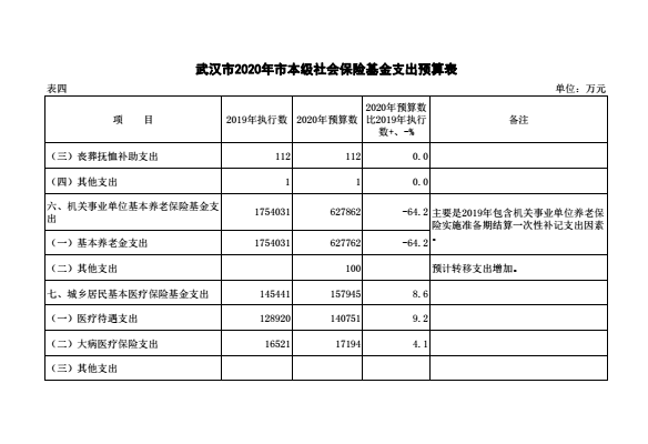 表四 武汉市2020年市本级社会保险基金支出预算表