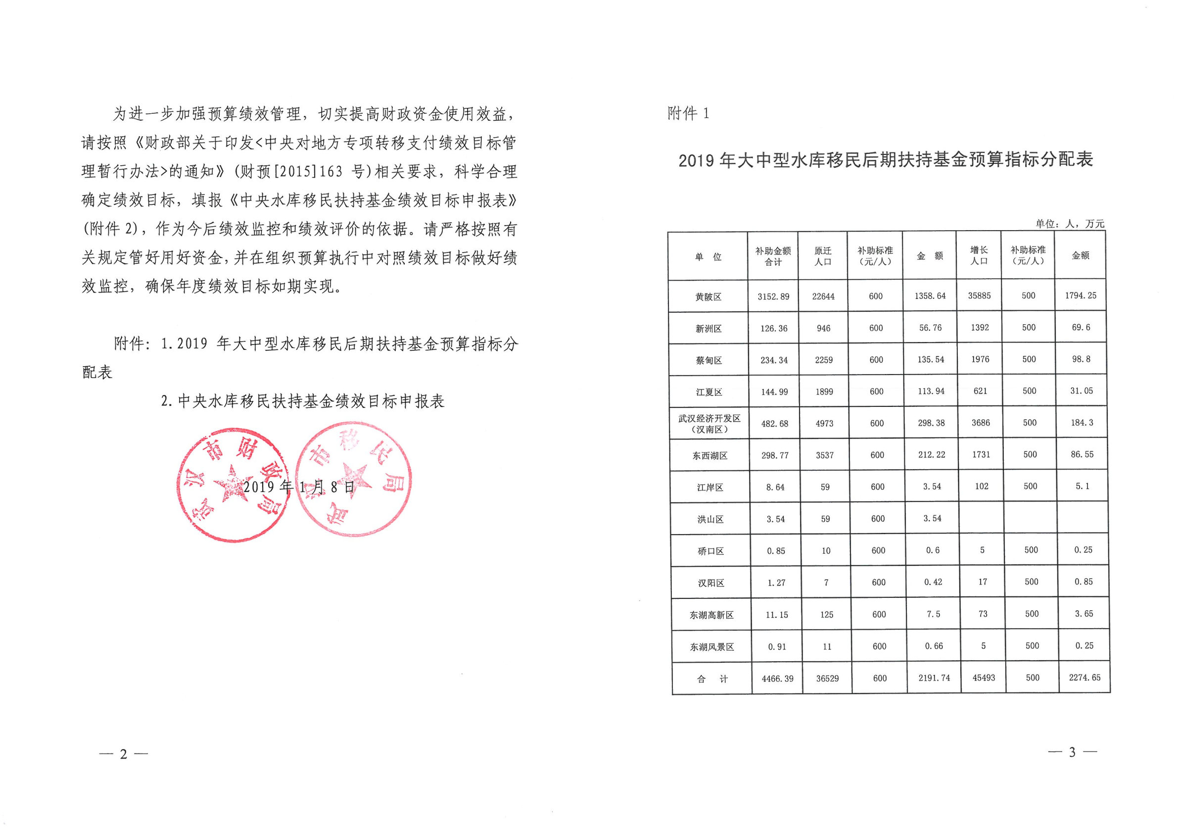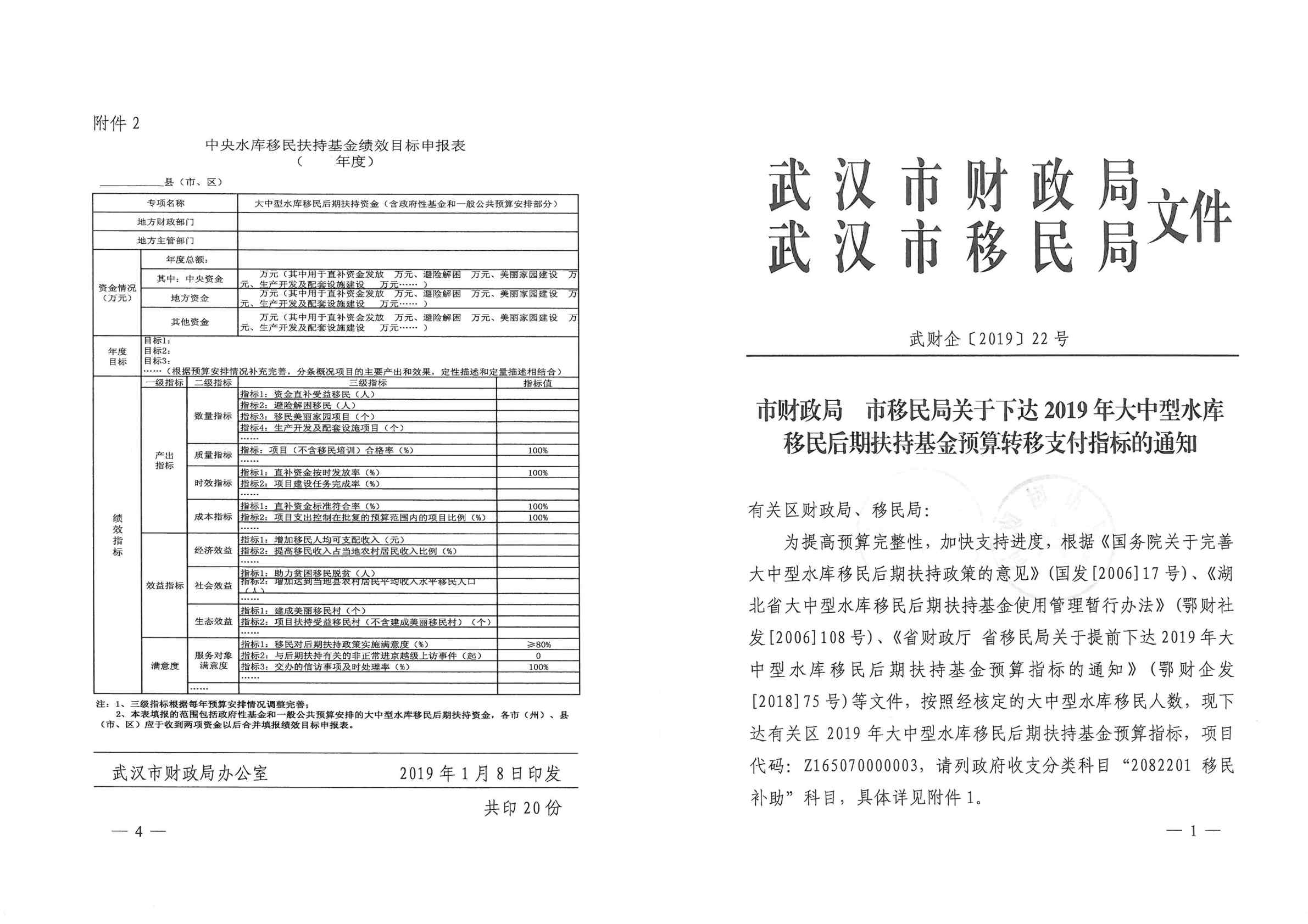 市财政局 市移民局关于下达2019年大中型水库移民后期扶持基金预算转移支付指标的通知