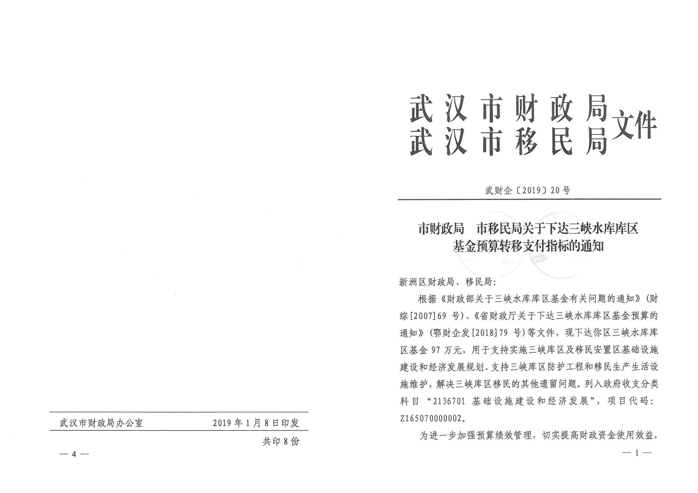 市财政局 市移民局关于下达三峡水库库区基金预算转移支付指标的通知