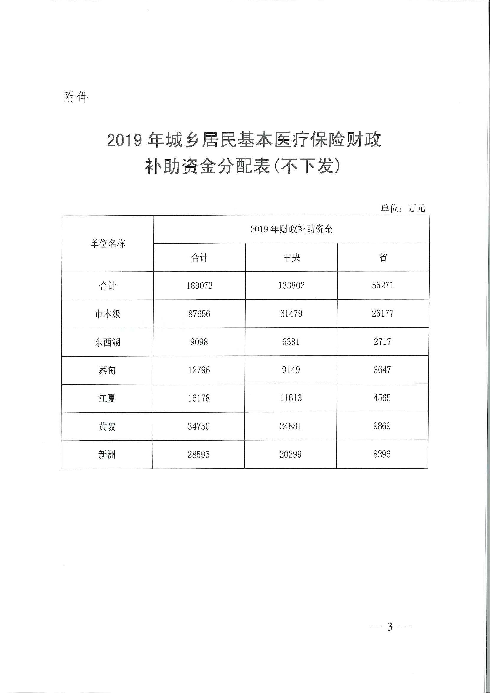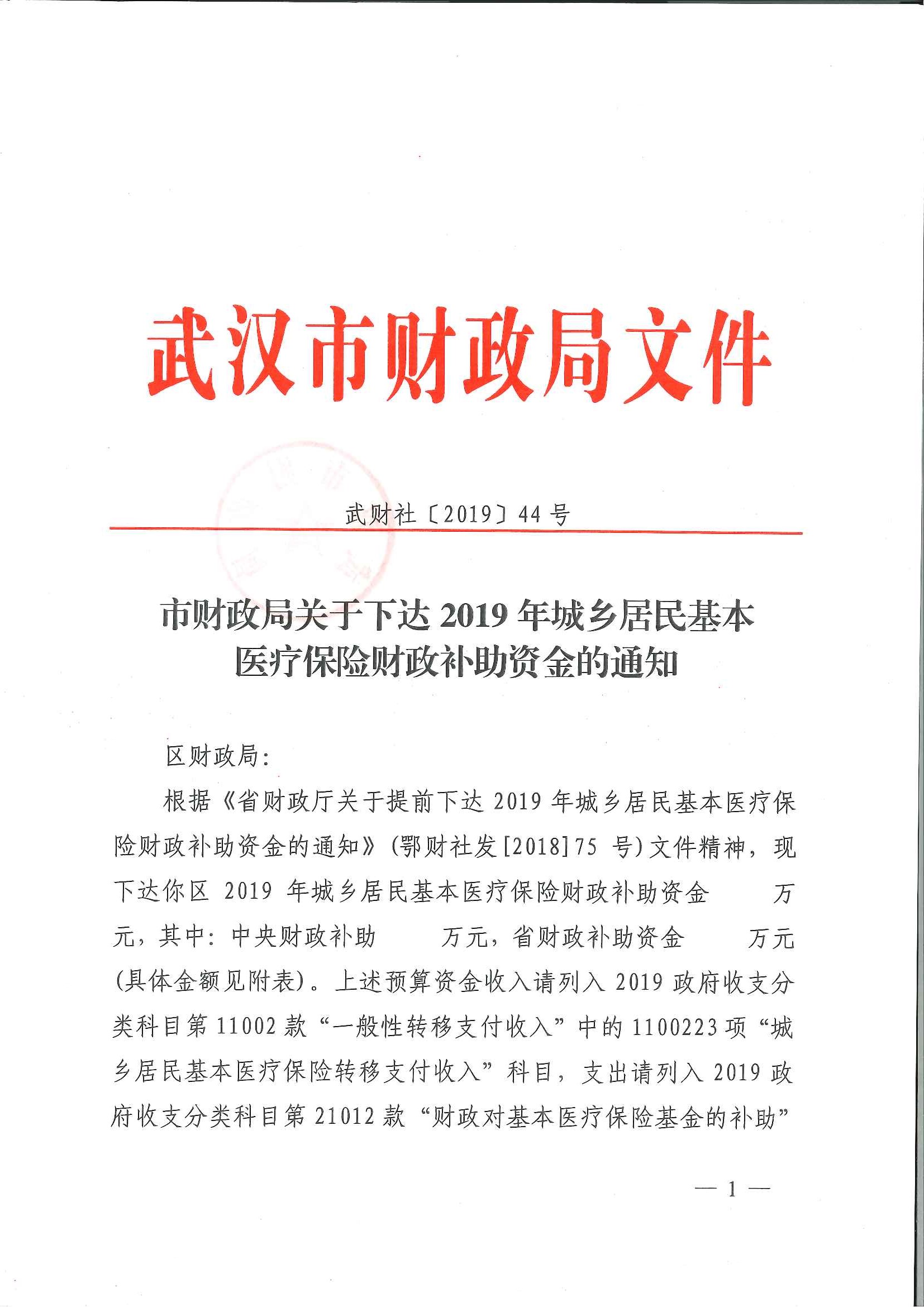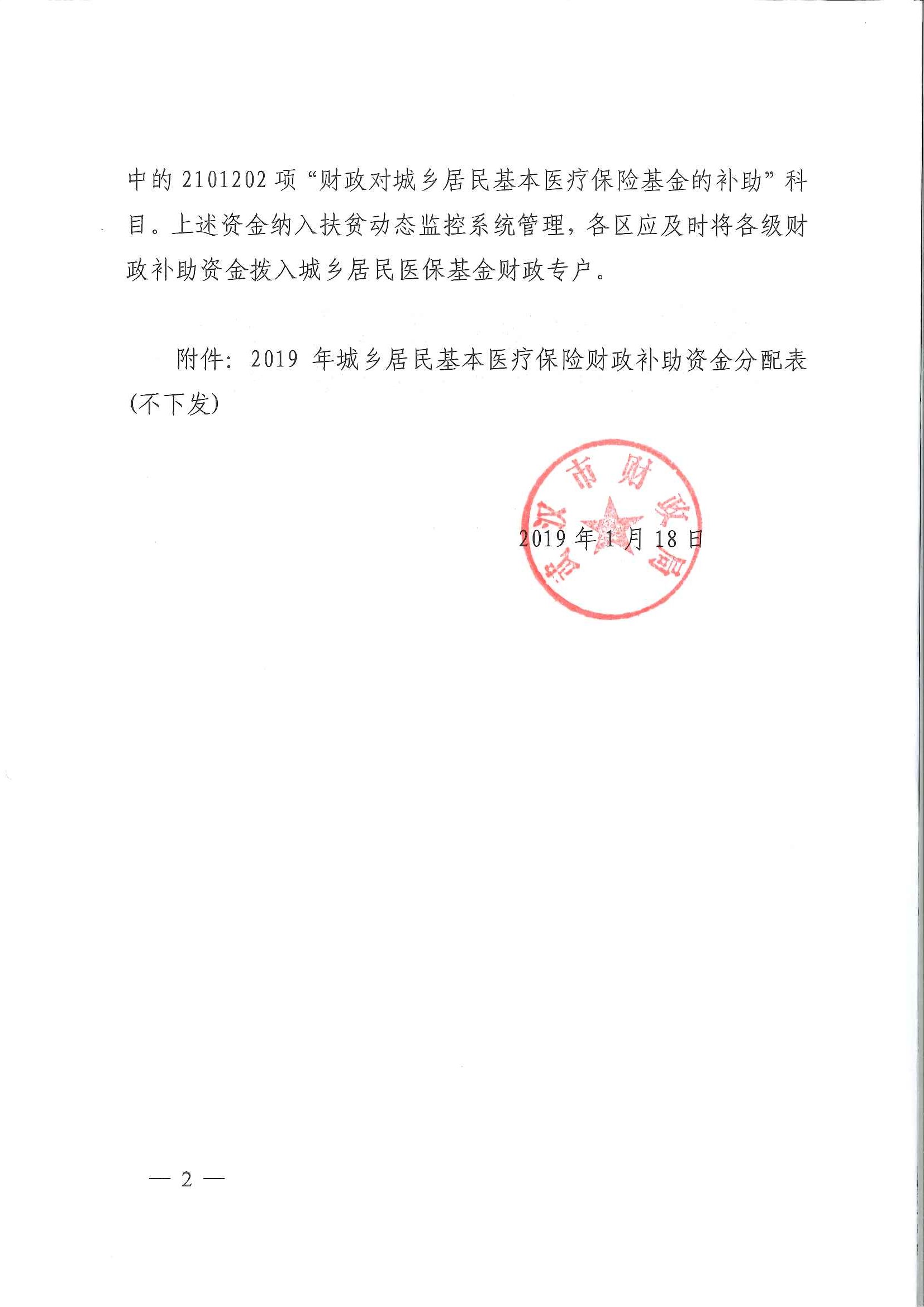 关于下达2019年城乡居民基本医疗保险财政补助资金的通知
