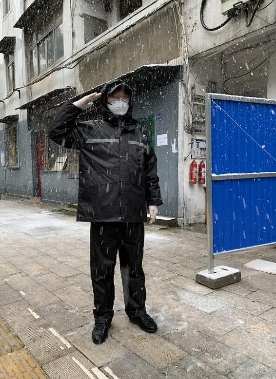 面对疫情,我们选择迎难而上。2月15日,雨雪交加,由于头一天晩上封闭管理的围挡板被狂风全部刮倒,我带领党员与市政工程人员冒雨抢修、加固,忙完后鞋子已被雨水浸透。中午时分,一位热心人士给我们送来两大包一次性雨衣,我想到社区物资匮乏,便转送一部分给社区工作人员。匆匆返回的路上,因地面冰雪湿滑,我被重重的摔了一跤,在地上足足躺了一分钟,动弹不得。我想,这下完了,不是骨折也会卧床。我忍着巨痛,尝试着爬了起来,庆幸自己还能慢慢站立、缓步行走,当时,我只有一个想法,我不能就这样倒下,我绝不能倒下,因为,战斗才刚刚开始。我咬着牙,没有回家,不敢告诉家人,一直坚持到傍晚。这一天,我们浑身淋湿,冻得发抖,变成一个冰雪人;这一天,我们赤手空拳,迎着困难,坚守在只有风雪、没有任何遮掩的阵地。