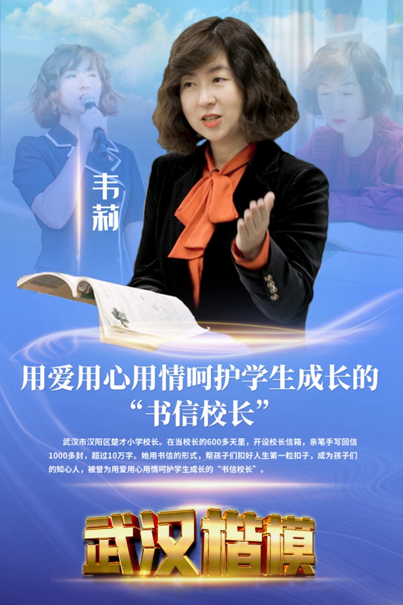 近日,武汉市委宣传部发布2022年第二季度“武汉楷模”榜单,用爱用心用情呵护学生成长的“书信校长”韦莉等10人(集体)上榜。