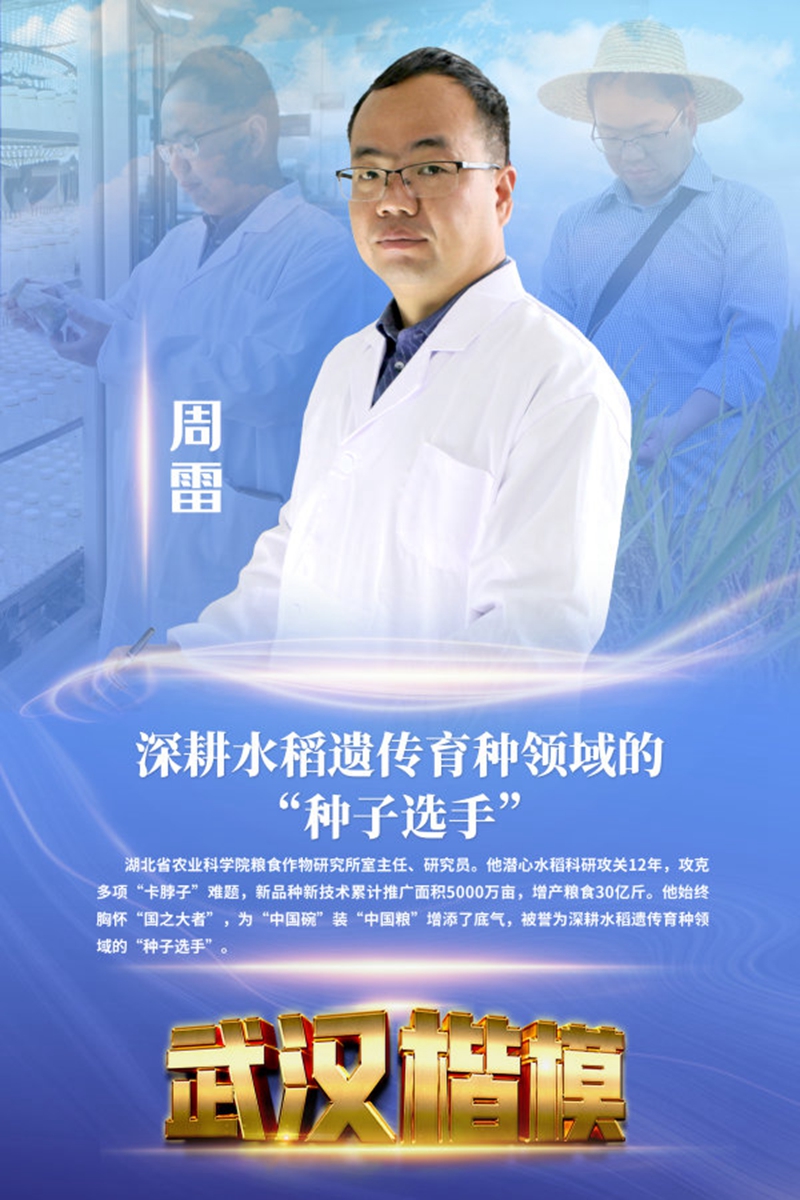 周雷,男,1983年4月出生,湖北省农业科学院粮食作物研究所研究室主任、研究员、水稻党支部书记。
