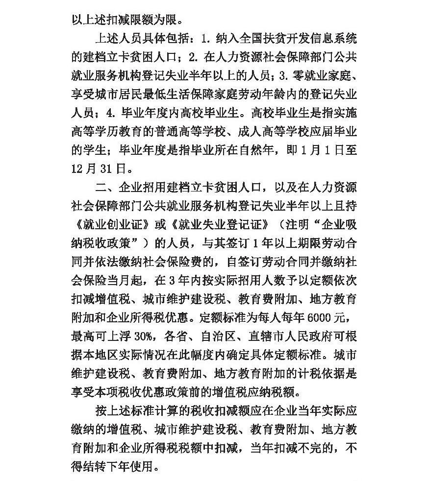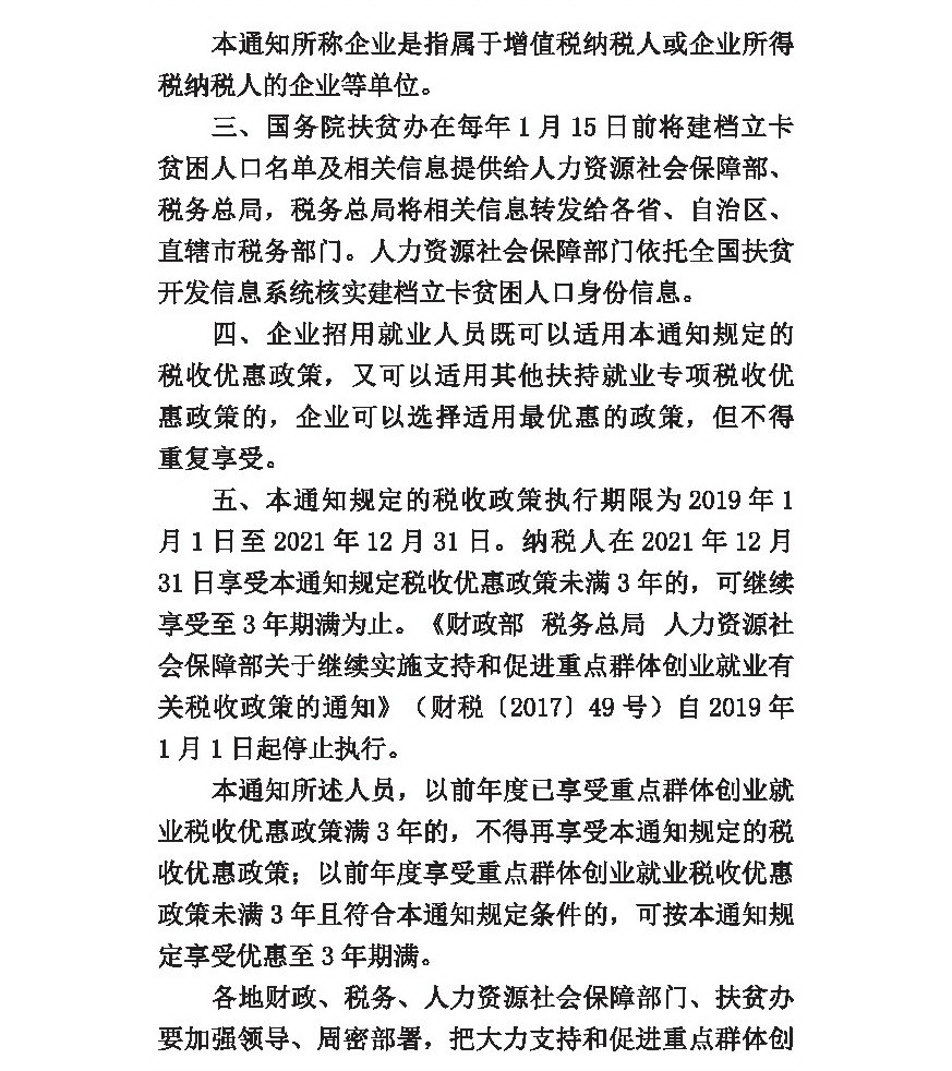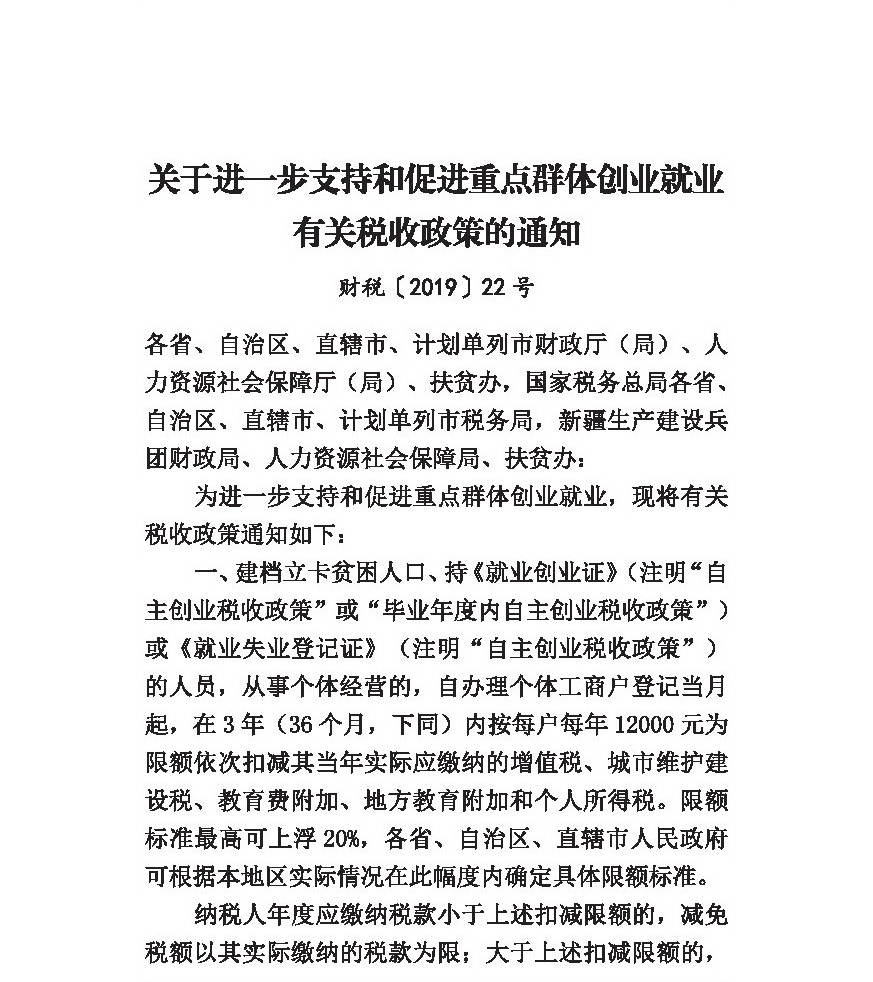 关于进一步支持和促进重点群体创业就业有关税收政策的通知
