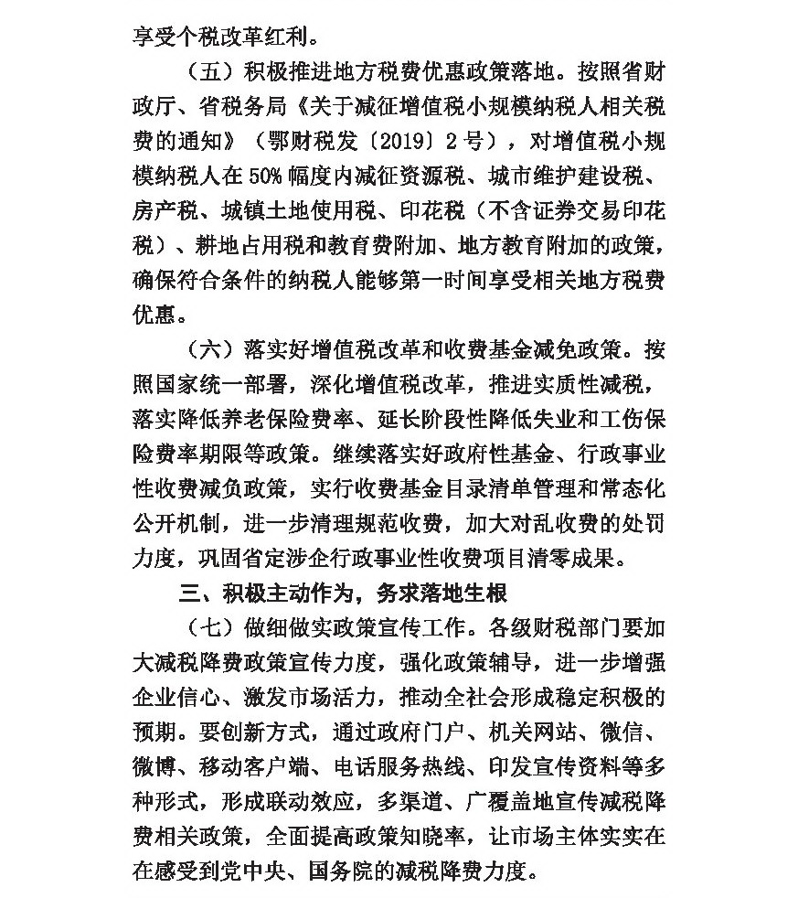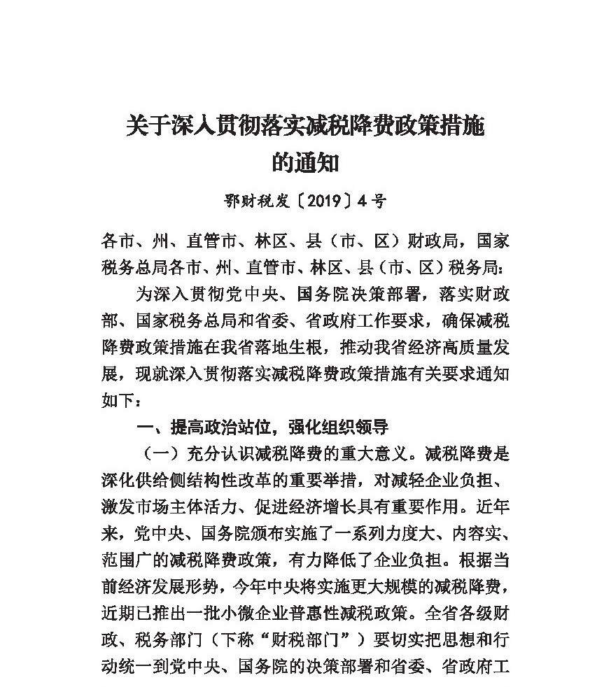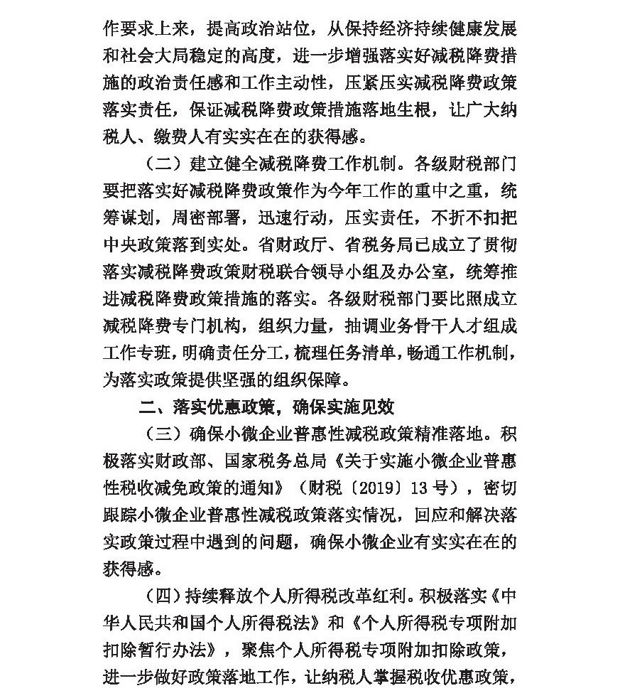关于深入贯彻落实减税降费政策措施的通知