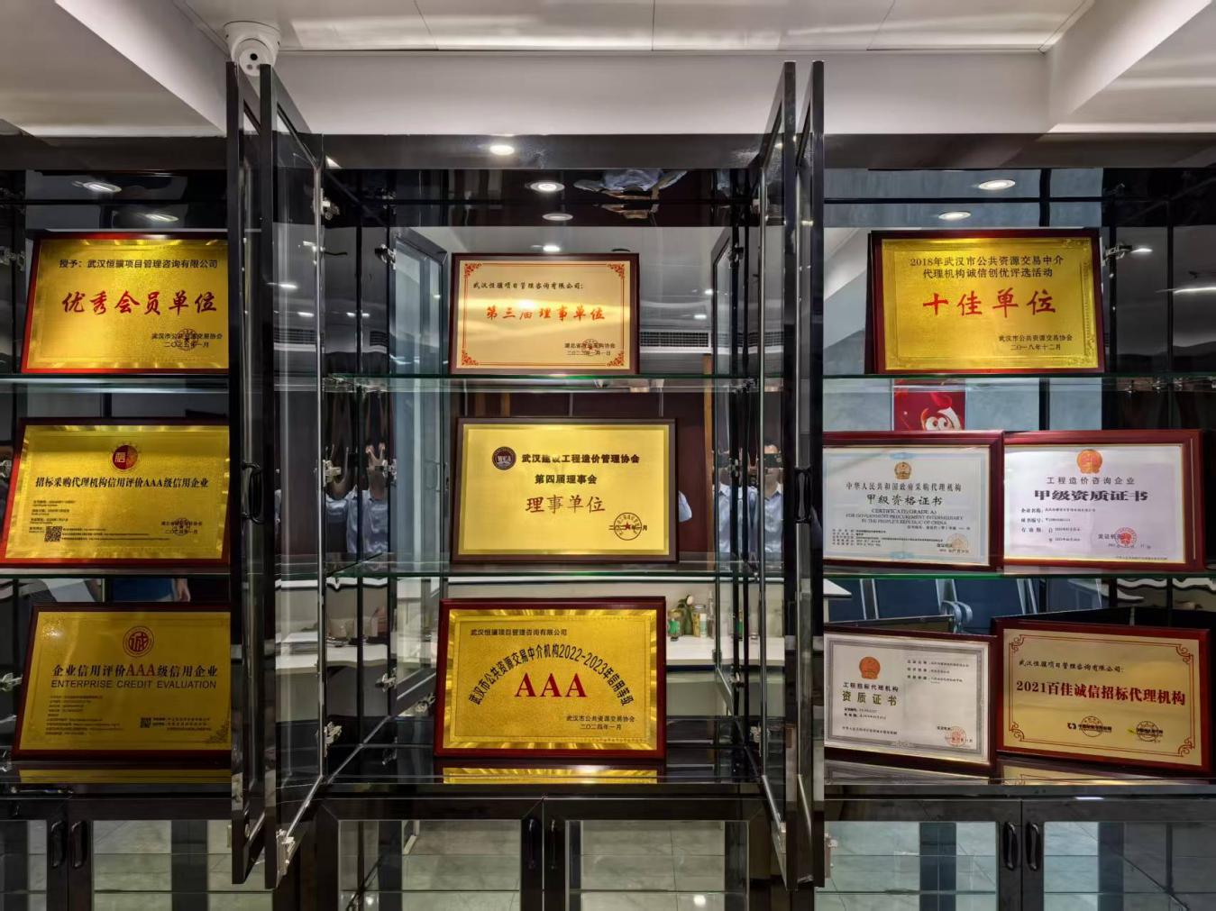 2018年,公司获得“武汉市公共资源交易中介代理机构诚信创优评选活动十佳单位”。近年来,公司还获得“2023年度湖北省招标代理机构诚信创优评级信用评价AAA级信用企业”、“武汉市公共资源交易中介代理机构2022—2023年度诚信创优评选AAA级企业”等荣誉。