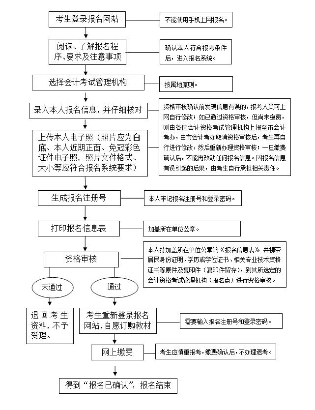 武汉市2019年度全国会计专业技术中、高级资格考试报名流程图