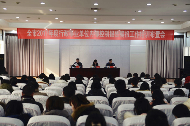 根据财政部和省财政厅统一部署,1月30日,市财政局组织召开全市2017年度行政事业单位内部控制报告编制工作培训布置会,布置相关工作,来自各区财政局、市直各部门有关人员共160人参加会议。