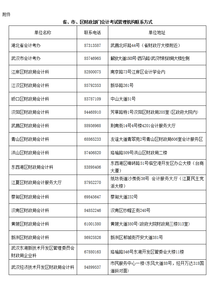 三、有关具体事宜考生可登录湖北省财政厅公众网(http://www.ecz.gov.cn)或武汉市财政局网(http://czj.wuhan.gov.cn)查阅《湖北省财政厅关于2016年度会计从业资格考试有关事项的通知》(鄂财办会[2016]2号)。